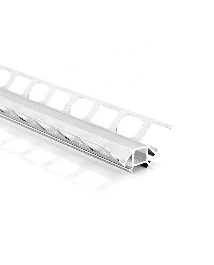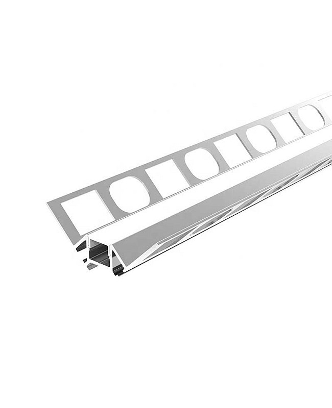 The inside corner light profiles are specially designed for adding seamless, integrated lighting at inside tile joints and corners. Engineered to be installed during tiling, enables you to deliver a clean, architectural lighting solution that enhances interior aesthetics without disrupting the tile layout. You can add them in tiled or marble areas such as the kitchen, bathroom, shower niche, or swimming pool. The inner width is 10.5 mm and accommodates a maximum width of strip lights of 10 mm. You can add our 10mm IP20 non-waterproof COB LED strips for dry places or 8mm IP67 waterproof LED strips in wet or rainy environments to create a uniform lighting without light dots. The tile light channels are made of 6063-T5 aluminum alloy with silver anodized surface treatment for anti-oxidation resistance and a longer lifespan. The standard lengths are 1 m and 2 m, and custom lengths are supported. There are only PC diffused covers available; they are made of brand material with stable quality, anti-yellowing, and perfect light distribution. The diffused covers will diffuse the lighting smoothly for a cozy illumination. End caps with and without wire holes are included.