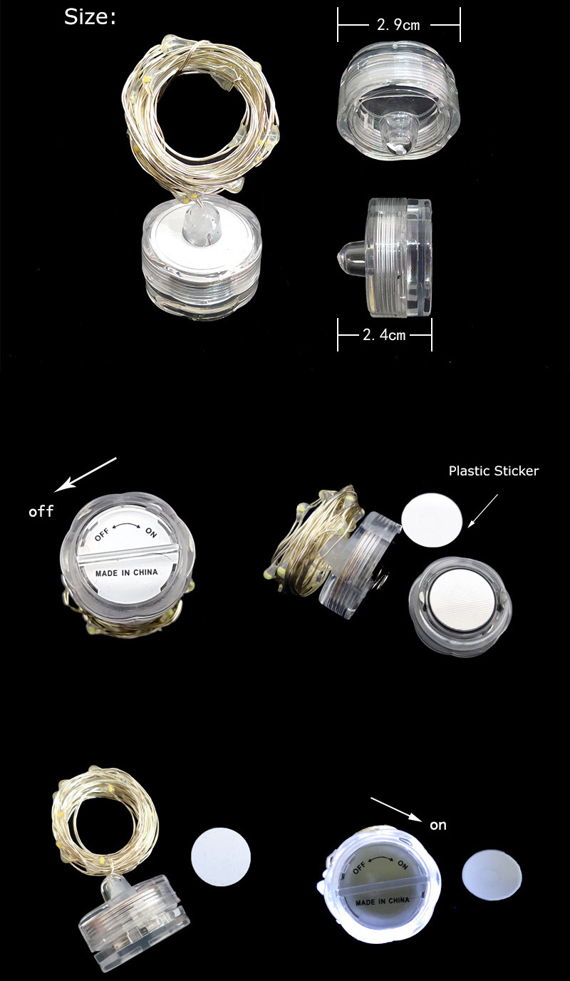 The LED copper fairy lights use high-quality LEDs as the light source, saving energy and having a longer lifespan. There are 10 LEDs per meter or 20 LEDs per 2 meters of copper fairy lights. 2PCS 2032 button batteries power the LED light. The bottom of the battery box has a switch to turn on or off the LED light. The fairy lights are waterproof, can be used indoors or outdoors, and are perfect for weddings, parties, home decorations, and Christmas.