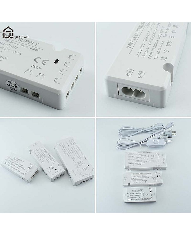 The LED driver With 6PCS DUPONT connectors, with the ultra-thin design and made of environment-friendly flame retardant insulating rubber material, comes with the power cable with switch, you can connect to the AC110V or AC220V power system directly, it works between AC100V to AC240V, the output voltage is DC12V, with 6PCS Dupont connectors or 2510 connectors available, can load 6PCS LED light at the same time and the max output current not over 5A. You can connect to the LED under-cabinet strips, LED panel lights, etc.
