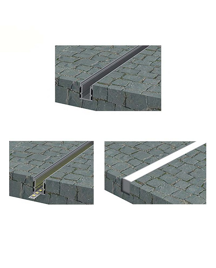 The LED extrusion channels are designed to be flush-mounted into the floor, providing a clean and minimalist finish while offering soft, uniform embedded illumination. They offer seamless integration into concrete, tile, wood, or stone floors. They come with 3 mm thick PC diffusers to provide IP65 waterproof protection, and protect the LED strips from water, dust, and step-on. Ideal for installing floor lighting in wet environments, such as outdoor floors, garden walkways, pathways, and more. These border LED channels are crafted from 6063-T5 aluminum alloy with an anodized finish, anti-oxidation resistance, durability, and long-lasting performance. The maximum length is 2 meters per piece, and it can be cut to any length that fits your needs. Only PC diffused covers are available, made of brand-stable material and 3mm thickness, enhancing structural strength while delivering smooth, glare-free illumination. The inner width is 12.2 mm, allowing for a maximum width of 12 mm for the LED strip lights. Recommend adding COB strip lights as the light source without hotspots. The aluminum channels can serve as a heat sink, enhancing heat dissipation. End caps with and without wire holes are included.