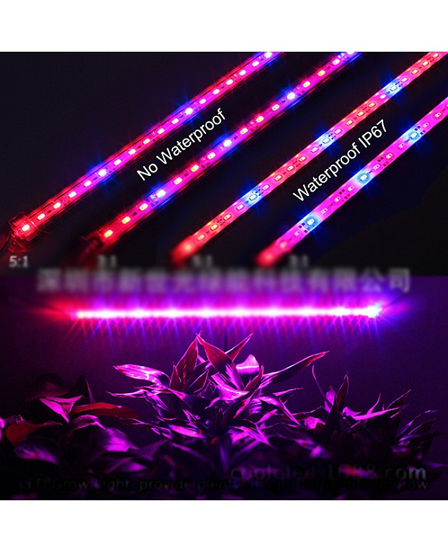 The LED grow strip light kit uses high quality 5630 SMD LEDs as light source, each kit include 4PCS 50cm LED strips and LED driver, each LED strip includes 36PCS LEDs, the color ratio of the LED grow light is 3:1 and 5:1(Red: Blue), the LED grow strip light is non-waterproof, only recommend works in indoor. These new LED strips can be used in the greenhouse for flowers and plants. The AC110V-220V LED driver is included; there are 2 types of power plugs available: the US and EU.