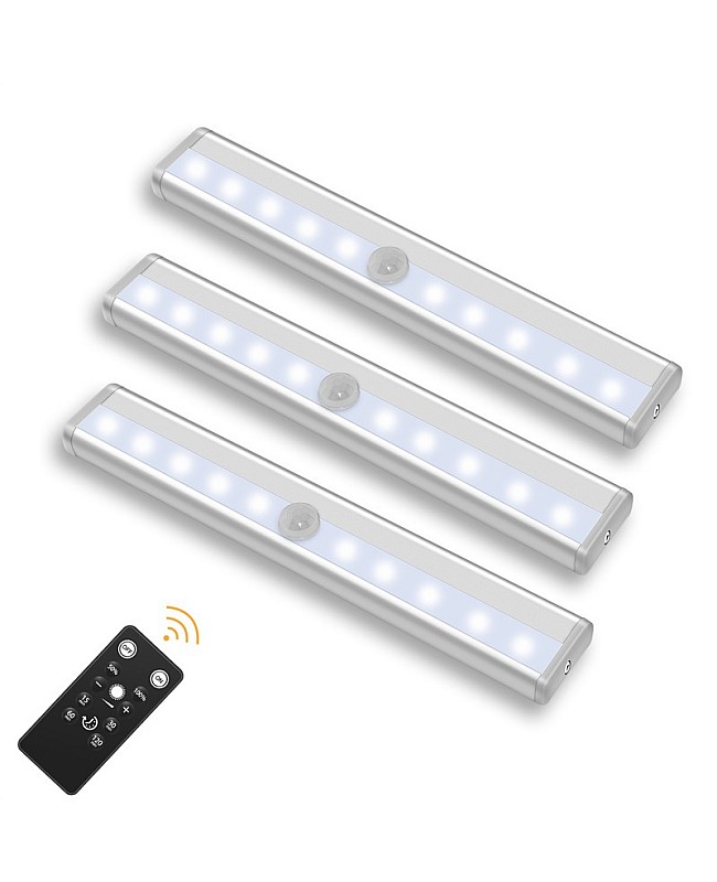 Check the LED Stair Night Lighting With the Remote. Use the high-quality 2835 LEDs as the light source, saving energy and having a longer lifespan. It comes with an IR remote and adopts the PIR sensor; you can use it to turn the LED Night Light on or off, adjust the brightness, and set the working time. With the PIR sensor, when you close to the LED Light, the Night Lamp will turn on automatically; when you leave, it will turn off automatically. There are white and warm white LED Products available, 10 levels of brightness adjustable, and 4 levels of timing function. 4PCS AAA batteries power the Wireless Night Lights With Remote, so you can easily install and replace the batteries. The LED Stair Light with magnets, the movable metal bar is included, and the back with 3M tape; you can take off the protector on the back of the 3M tape and stick it on the place that you want to install the LED Night Light, then fix the LED Light on the metal bar. You can install the Small LED Lights With Remote on the stairs, side of the door, and top of the cabinet.