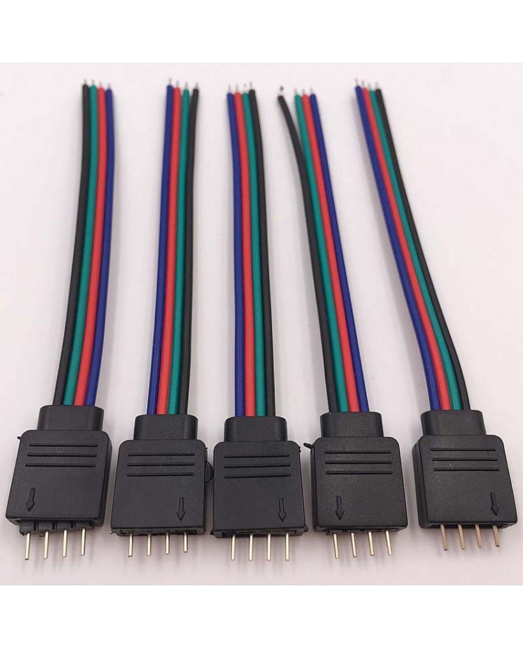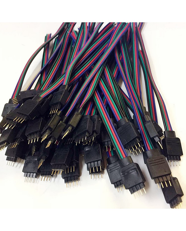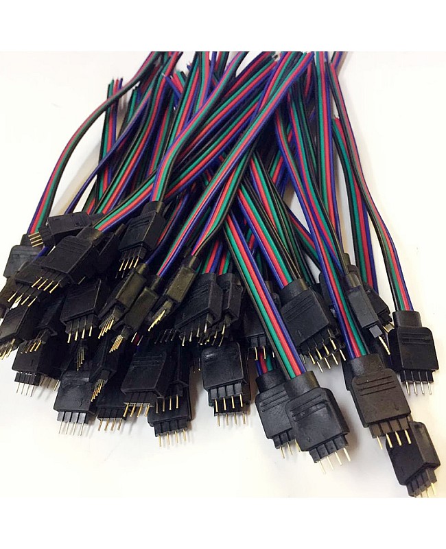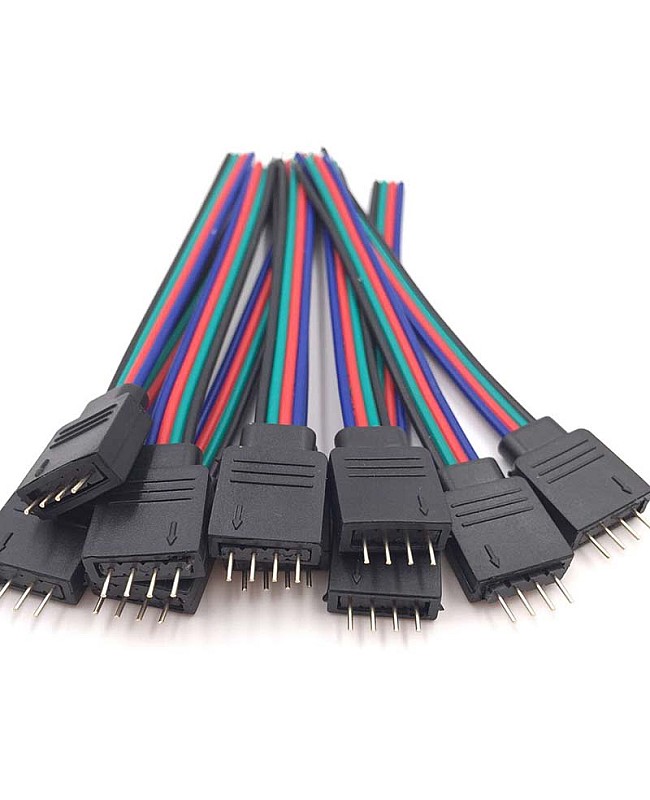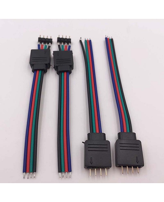 The LED strip light connectors, single side with the 4-pin male quick connector, have a wire length of 10cm. The width of the quick connector is 10mm, you can use it to extend the power cable of 5050 RGB LED strips or connect to an RGB LED controller. The male 4-pin quick connectors should work with female quick connectors 4 pin, easy to install and use, no need for extra tools.