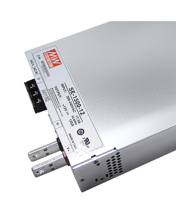 The Mean Well SE-1500 DC variable power supply, with a single output design and a maximum loading power of 1500W, allows you to choose various DC output voltages from DC5V to DC48V, with multiple protection functions to ensure working safety and reliability. The Mean Well SE1500 built-in DC ball bearing fan provides forced air cooling, allowing the DC power supply to work in the normal temperature range. Built-in remote ON-OFF control module, can connect to the remote to control it to turn on or off remotely, UL/CUL certificates approved, 2-year warranty. You can use them for the LED lights indoors.