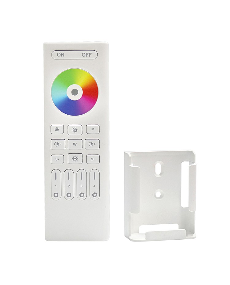 The RC03 LED remotes can work with LED light controllers to control single-color, dual-white, RGB, RGBW, and RGBCCT LED strip lights. They adopt the 2.4G wireless communication protocol for low power consumption and long signal transmission. You can use it to control the lights ON/OFF, adjust brightness, color temperature, color-changing speed, and set the static color or dynamic modes wirelessly. It has a 4-zone control design that lets you control the zones separately or overall control. It comes with a remote holder to mount them on the wall and prevent loss.