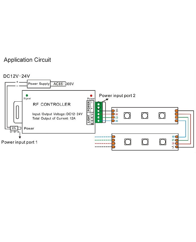 The RF RGB LED controller with 20Keys remote is enclosed in an aluminum shell. With a 3-channel output design, the max output current of each channel is 4A, the max output power can reach 288W when working in DC24V, and can drive the RGB LED strips, color-changing LED lamps, and so on. The 20 Keys remote control is included, and 8 static colors and 6 dynamic modes are available. Can adjust the brightness of static colors or the speed of dynamic modes.