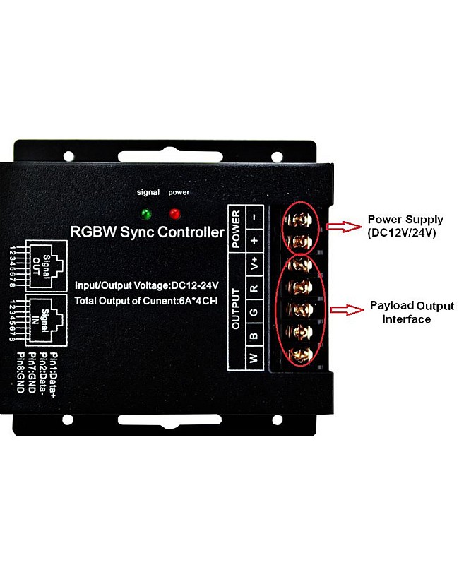 The RGBW LED controller with RF touch remote control, which has a 4-output-channel design, is suitable for all kinds of constant voltage RGB and RGBW LED Lights. The RF LED controller has a 4-channel output design, with a max output current of up to 8A for each channel. Working on DC12V or DC24V, max loading power up to 768W when working in DC24V. It adopts dual RJ45 internet cable sync interfaces, and can use the RJ45 Ports to connect multiple controllers and achieve the synchronization function of thousands of LED lamps or LED strips. The RF touch remote control has one color ring and a sensor light in the center. All the buttons are in the touch form, and the color ring has 128 levels in different colors. There are 9 working modes in total, 2 white static colors and 7 dynamic modes. The brightness of static colors and the speed of dynamic modes are adjustable.