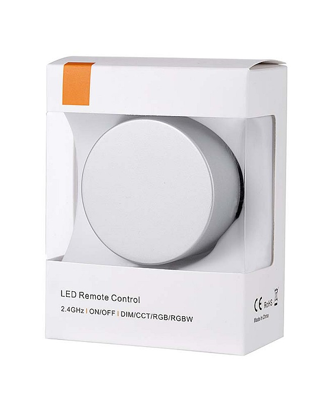 The 2.4G rotary dimming LED remote controls work on DC3V, powered by 2PCS AAA batteries, DIM/CCT/RGB/RGBW 4 In 1 function, you can short press the LED switch to turn on or turn off the light, long press during the LED remote control in working state, with a circular knob design, unique interface and easy operation, you can rotate the LED control to adjust the brightness of single color LED light, or change the color temperature of CCT LED light. Comes with a holder, easier access, and keeps. It adopts 2.4GHz wireless control, has a remote control distance of up to 30m, and is non-directional. The RFBT15 remote is compatible with HD/HC/QD/QC/DLC/DLS/DLK/T2/T3 series products.