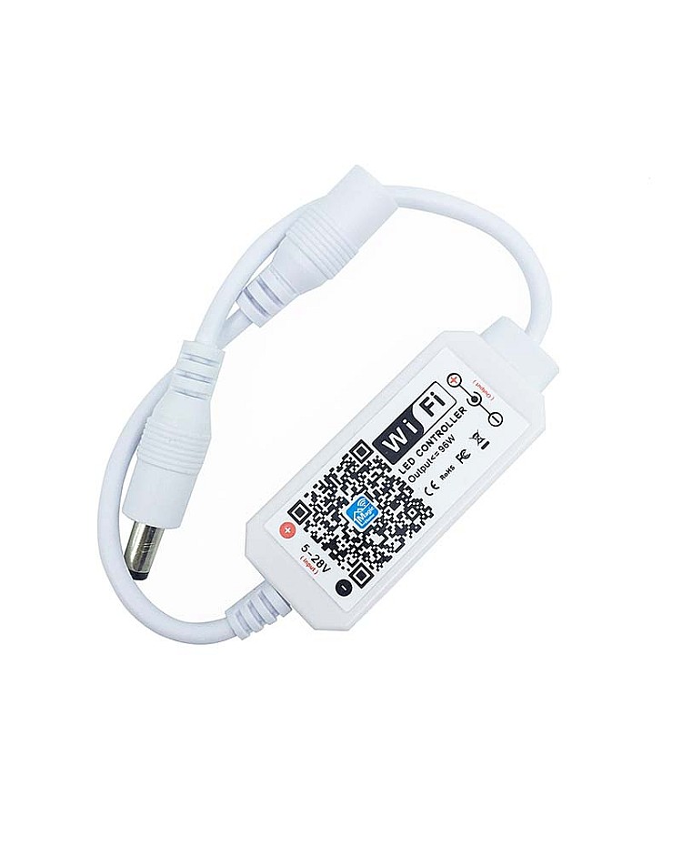 The single color LED strip controller with WiFi function comes with the LED control unit and DC connectors. The female DC connector connects to the LED power supply, and the male DC connector connects the single-color LED strips. Connect the LED controller with the LED power supply, then use your phone to connect to the WiFi " LEDnet", and use the Magic Home Pro app to control the LED strips. You can adjust the brightness of the LED strips or activate the music function, and the brightness will change following the music. The app also has a timer function, and you can set the time to turn the light on or off. The WiFi LED controller also supports Amazon Alexa and Google Home Voice commands.