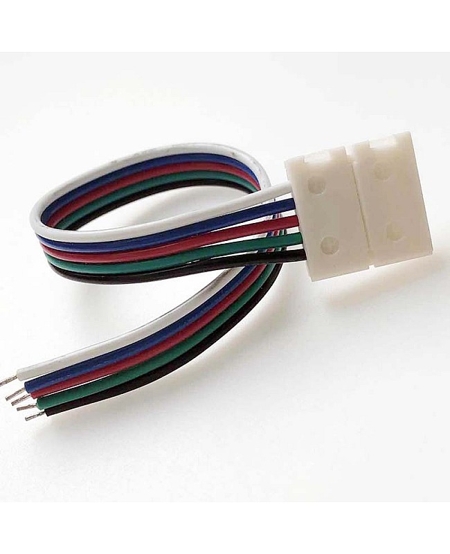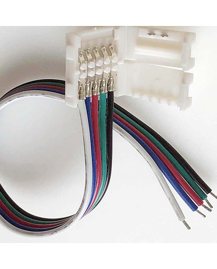 The 10mm single-sided RGBW LED connectors have a wire length of 15cm and one side with a 5-pin solderless LED connector. Open the top of the connector, insert the RGBW LED strips into the connector and under the pins, and snap shut. You can connect to a controller or extend power to another strip. You can use these types of LED connectors with the 10mm RGBW LED strip lights.