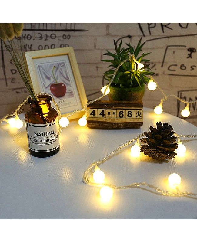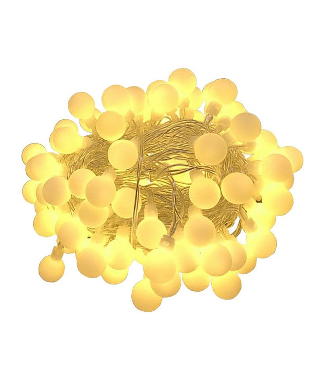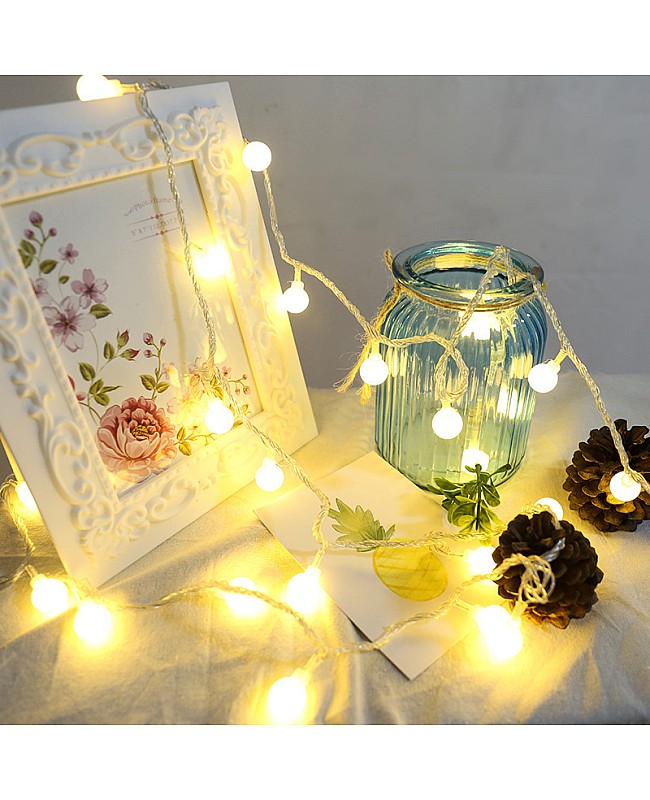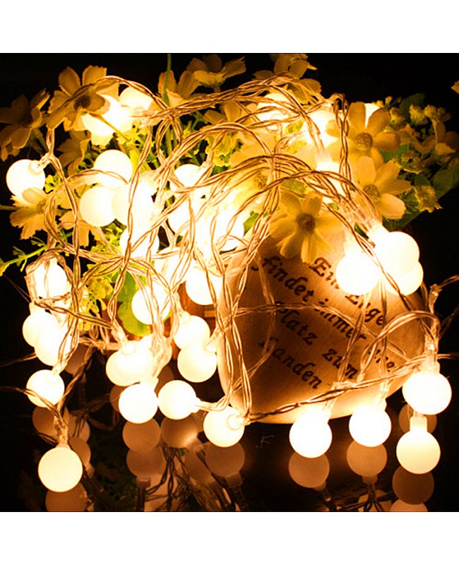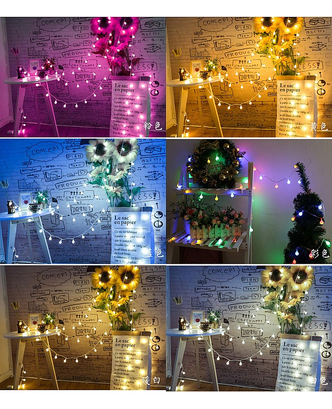 The LED Christmas tree lights use high-quality F5 LEDs as the light source. The LEDs are mounted in small ball shells at an IP44 waterproof level. The LED Christmas lights with male and female power plugs can connect to a maximum of 5 sets. They come with an adapter and 8 switchable working modes and can connect to your home power system directly. The emitting color is warm white; you can use it in the bedroom, living room, restaurant, or shop.