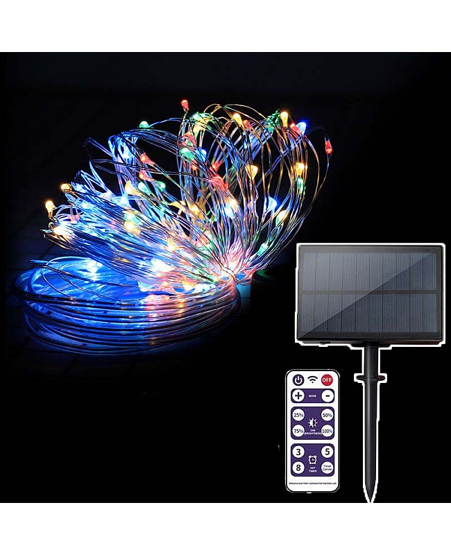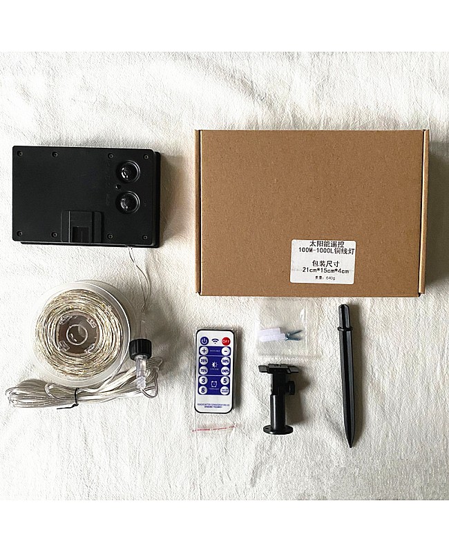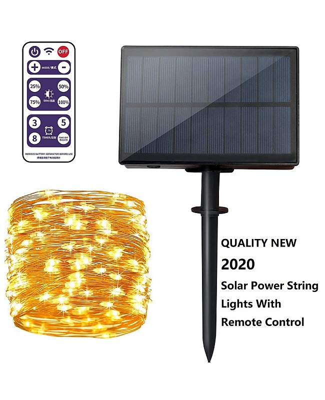 The solar-powered outdoor string fairy lights come with a remote control. The LED string lights use high-quality LEDs as the light source. You can choose different lengths, LED quantity, and emitting colors. The maximum length is 102 meters and has 1000 1000 LEDs. Li-ion batteries power the LED light and use a high-quality solar panel to charge the batteries. The battery box has an ON/OFF switch and an 8-button flashing mode button. It comes with a remote control, which you can use to adjust the working mode and the brightness. You can install the solar LED string Light on the wall or on the floor; The waterproof level is IP65, and it can work outdoors. You can install them on a Christmas tree, in a Living room, a shop, a mall, or an office.