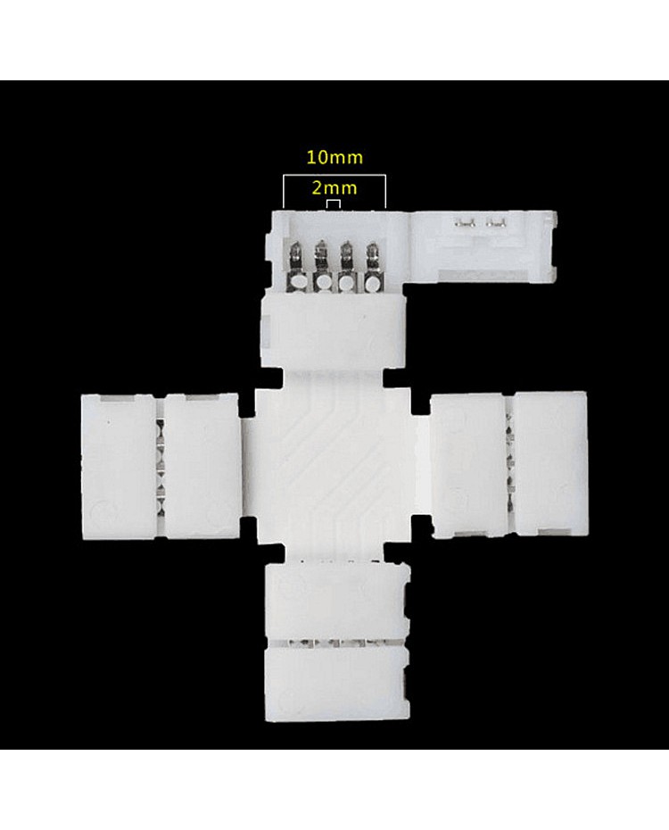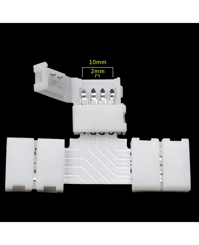 The solderless LED strip light connectors, you can choose the various shapes, L, +(Cross), T shapes available, all of them come with the 4 Pin quick connectors for the RGB LED strips, you can insert the RGB LED strips into the connectors and close the quick connectors to finish the installation. Those LED connectors perfectly fit the 10mm RGB LED strips with tool-free installation for your light project. Provides a 2-way, 3-way, 4-way quick splitter connection and a solderless quick snap-down solution.