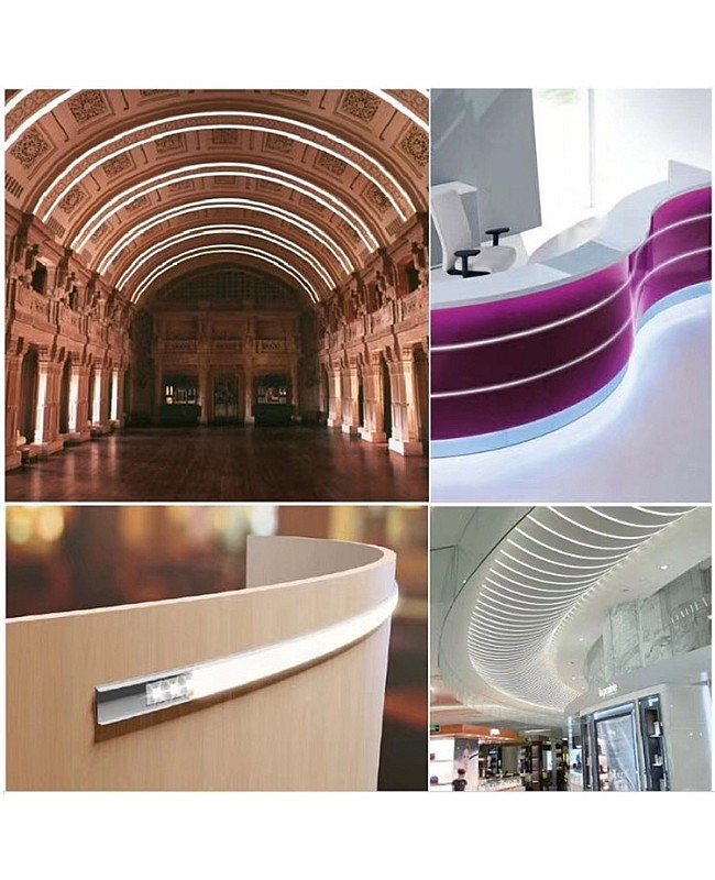 The Bendable LED Extrusion is slim and can be bent to almost any curvature for surface-mounted installation. It is an excellent option for lighting projects that require a flexible and versatile lighting solution. The height is only 5.6mm, and the inner width is 12.8mm, allowing for a maximum width of Strip Lights of 12mm. Recommend adding 8mm COB Strip Lights as the light source without visible light dots. The Bend LED Profile is crafted from high-quality aluminum, ensuring durability and long-lasting performance. The only PC diffused cover is available, made of brand-stable, anti-yellowing material to create a bright, even illumination. The standard lengths are 1m and 2 m, and they can be cut to any size that fits your needs. The LED Extrusion is bendable, allowing for use in offices, kitchens, hotels, and stores. It comes with metal clips, and you can mount them on the surface of your LED Project. End caps with wire holes and without wire holes are included, making it easy to connect the LED strips to the LED Light or LED Dimmer to light them up or adjust the brightness. The LED Extrusions can be curved or bent to fit any shape or space, are easy to install, and can be used in various applications, such as architectural, display, or accent lighting.