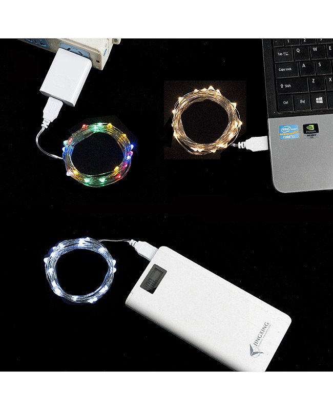 The USB copper wire fairy lights come with a USB cable, you can connect it to the wall adapter, laptop, or power bank to light it up, uses the high-quality 0603 LEDs as the light source, super-saving energy, and friendly to the environment, with a longer lifespan than traditional lights. The length is 10 meters, and with 100PCS LEDs, 4 different emitting colors available, you can choose the warm white, cool white, RGBY, or blue. Perfect for weddings, parties, holidays, Christmas, and home decoration.