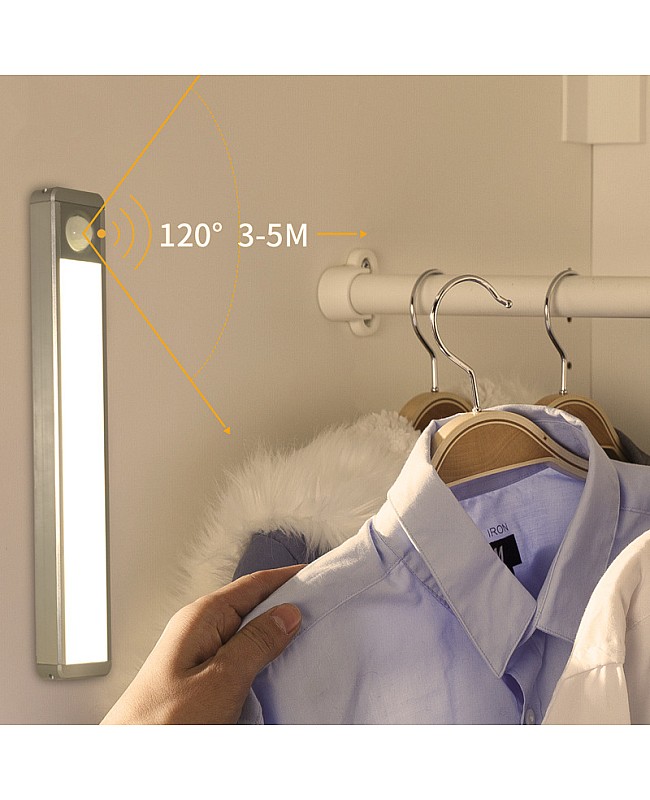 Check the USB Rechargeable Cabinet LED Night Light, made of 603 aluminum and PC material, the back with the metal piece and magnets, the metal piece with 3M tape, you can fix them on the wall of the kitchen, living room, bedroom, cabinet and wardrobe, easy to install and use. built-in 950mAh battery and with a micro USB port can connect to the computer or wall adapter to charge the built-in battery, it will be fully charged in 4-6 hours, use the 4014 high-quality LEDs as the light source, longer lifespan and saving energy. the LED Night Light comes with PIR sensor and light sensor, you can press the side button to switch the working mode, press the button for 5 seconds to enter the steady on mode, when the RED Indicator light, it means working in PIR + Light mode, when in the darkness, when you close the LED Light in 3-5 meter, the LED Light will turn on automatically, when in the day, it will not turn on, when the Blue Indicator light on, it means to enter the PIR mode, when you close the LED Light in day or night, it will turn on automatically. you can install them on the wall of your kitchen, bedroom, bathroom, living room or cabinet.