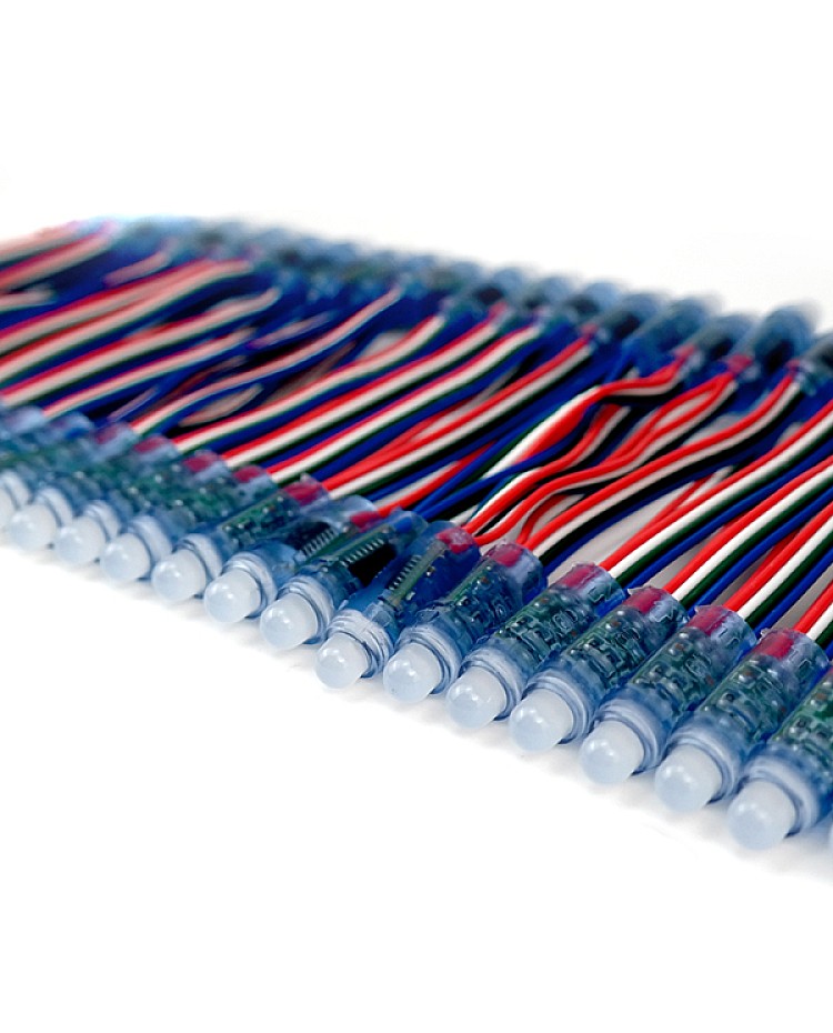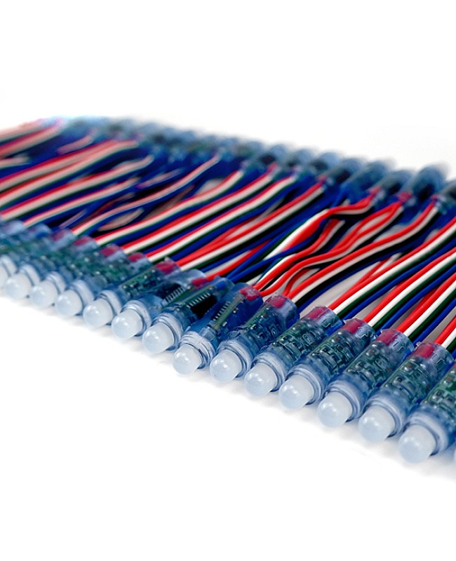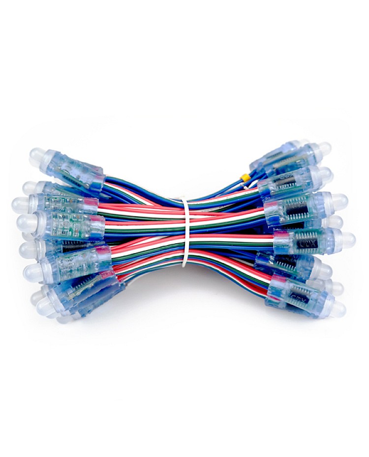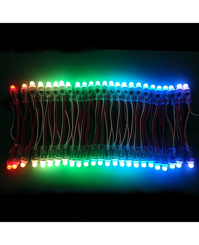 The programmable LED lights with 1903IC, working in DC5V, use one piece super flux LED as a light source, output 0.3 watts per piece, waterproof level is IP65, 50 pieces per string. This programmable LED light with a wide-angle view, 90 degrees to 180 degrees, has an LED diameter of 8mm, a hole diameter of 12mm, and a wire length of 10cm. The single LED can be cut arbitrarily. can connect them to the LED controller, and you can design the shape and program it yourself after connecting the LED controller to the programmable lights, which will show the color and style you want. The LED lights passed CE and ROHS.