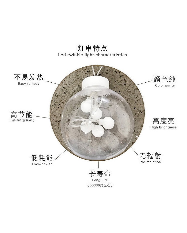 The wishing ball Christmas lights use high-quality F5 LEDs as a light source, with warm white, white, and RGB emitting colors. The lights work at AC220V and can connect to your home power system directly. The LEDs in the wishing ball-style shell are IP65 waterproof level. On both sides, with the tail plug or plug power plug, you can connect more LED Christmas lights for your project, the end side with the memory controller and eight flash modes available. The power cable with the pothook, please don't remove them, you can use the pothook or adhesive tape to fix the LED Christmas lighting, which is easy to install and use. You can use them for New Year's Day, Christmas, Valentine's Day, National Day, Easter, Halloween, and carnival.