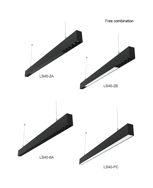 The LED Strip U Channel for an indoor linear lighting project is a great way to add a modern touch to any space, and can be combined with various beam angle reflectors, covers, and diffusers to create a customized lighting design. Made of 6063-T5 aluminum alloy material with a black anodized surface treatment, the LED Strip Channel offers anti-oxidation resistance and improved heat dissipation for LED Lights, resulting in a longer lifespan compared to similar products. The standard length is 1 m, and the maximum length can be up to 2.5 m. It can be cut to any size and supports custom lengths. The inner width is 18.5mm, allowing for a maximum width of 18 mm for the LED strips. There are three beam angle reflectors available: 24°, 38°, and 50°. The reflectors can also be chosen from various lens options: 1 lens, 3 lenses, or 5 lenses. The suspension wires are included; you can mount them on the ceiling and use them as accent lighting in the offices, etc.