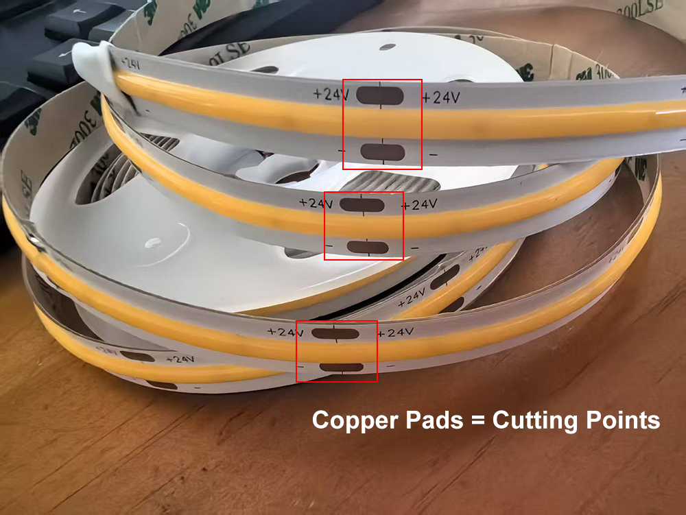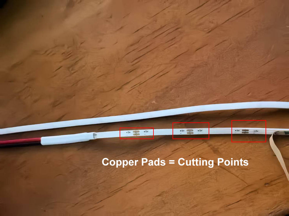 Step 1: Locate the cutting points: Look for scissor symbols or copper dots indicating safe cut points. If you are still not sure about it, please ask your seller to confirm.