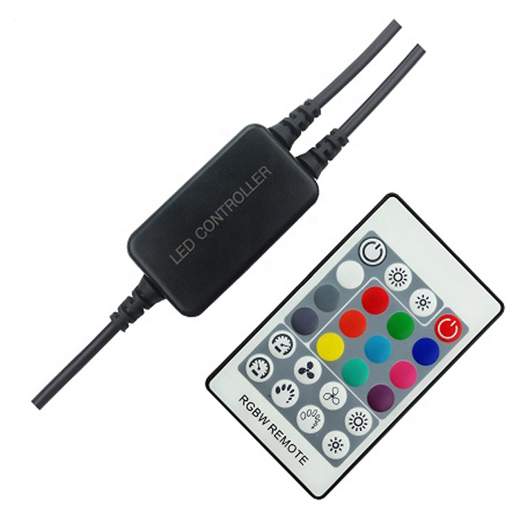 Hi, guys, today let me introduce one good quality RGBW LED Controller, but with the smallest size and sell at the cheapest price. the mini RGBW LED Controller with inline design and comes with 24keys IR remote, the LED Controller comes with a female 5pin connector and a female dc connector, super easy to connect to RGBW LED Strips and LED Power Supply. because of the smaller size design, you can hide it in a narrow place and control the light-changing via the IR Remote Control.