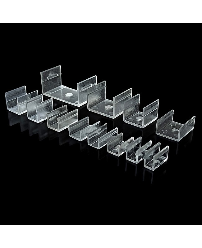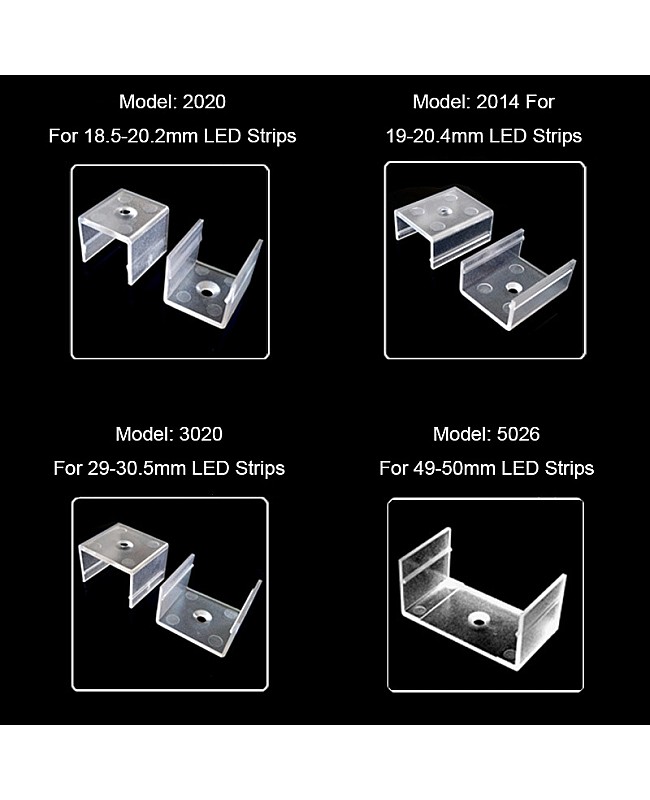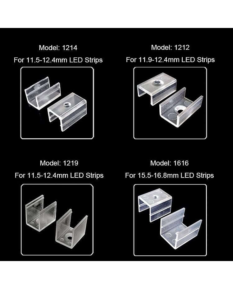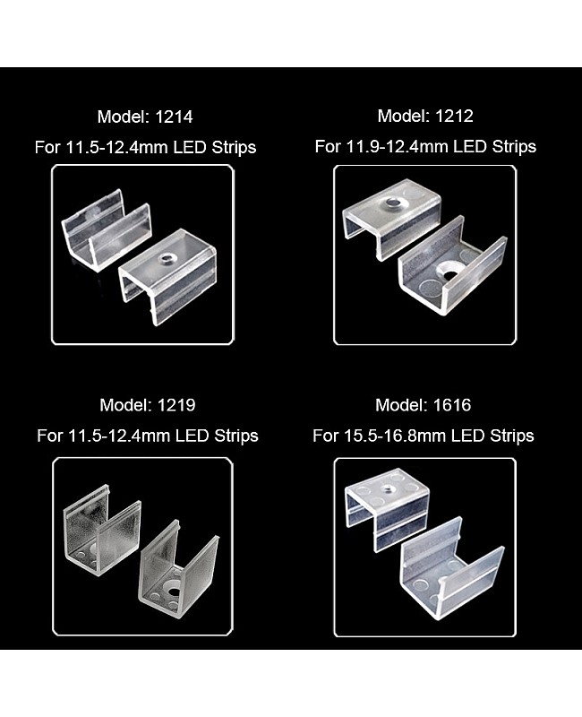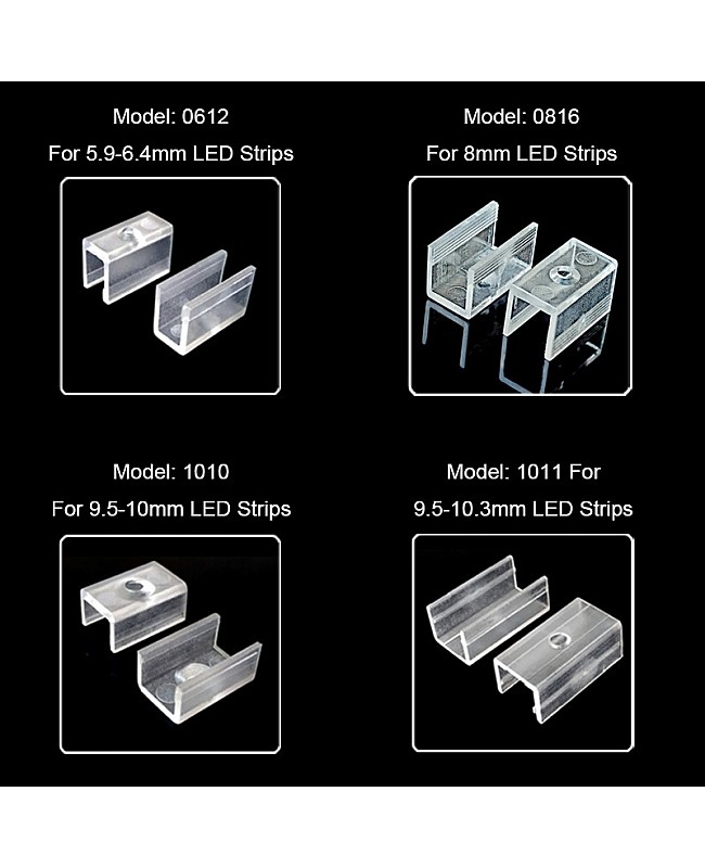 The clear plastic LED strip light mounting clips can be used for waterproof SMD, COB, and neon LED strips. Various width products are available, and the screws are included. You can fix the LED strips on the wall or ceiling, which can also be used in a wet or water location for outdoor applications.