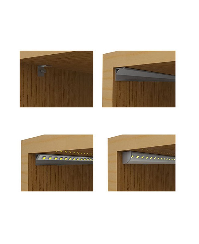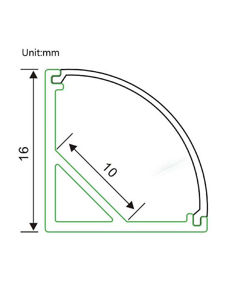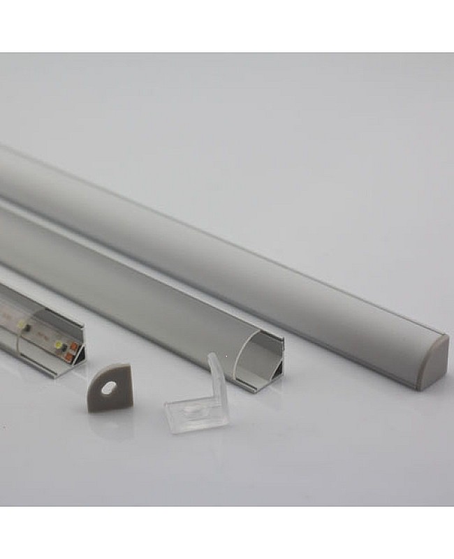 The corner mount LED profile is an excellent choice for those seeking an efficient and attractive way to illuminate cabinets, shelves, or wall/ceiling junctions, providing cove lighting. This product features a slim and sleek design that allows for easy installation and can be used to illuminate corners, edges, and other hard-to-reach areas. It is made of high-quality 6063-T5 aluminum alloy material with a silver anodized finish, anti-oxidation resistance, and a longer lifespan. The inner width is 10mm, allowing for a maximum width of 10mm for LED lights. There are three types of rounded diffusers available, allowing you to choose from an opal matte cover, a semi-clear matte cover, and a PC diffused cover for various applications. They are made of high-quality material, and the anti-yellowing feature provides even light distribution, eliminating potential harsh shadows to create a soft and comfortable illumination. The standard lengths are 1 m and 2 m, and can be cut to any length that suits your needs. The Aluminum V-shaped profiles can be used as heat sinks for improved heat dissipation, extending the lifespan of LED Lights. This Angle Profile is perfect for creating an eye-catching atmosphere in any space, and its durable aluminum construction ensures that it will last for years to come.