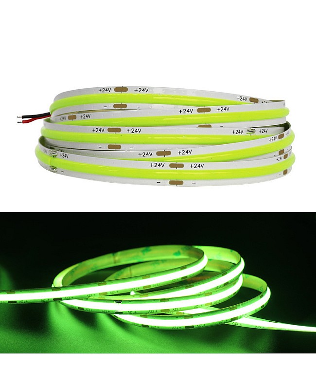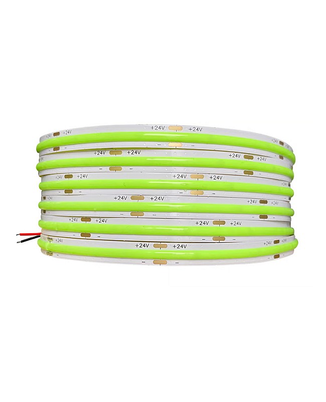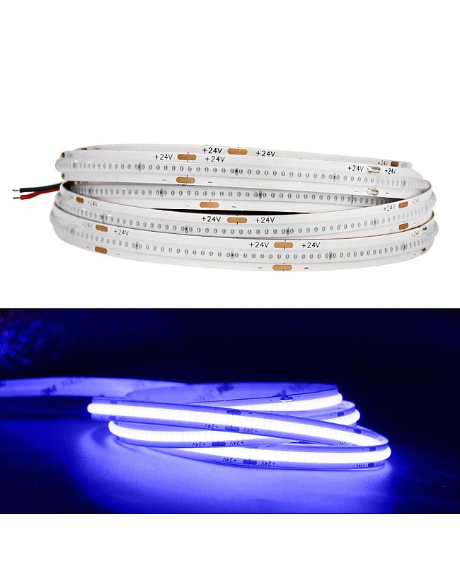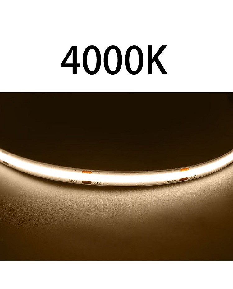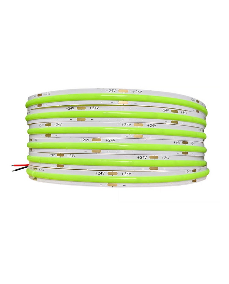 The COB 5M LED Strips, featuring the new COB LED technology, produce seamless LED linear strip lights without the need for an extra diffuser cover. Use the 1022 LEDs as the light source and the LED Chips made by the San An company. 5 meters per reel, 480PCS LEDs per meter, the COB refers to the mounting of a bare LED Chip in direct contact with a substrate to produce LED arrays, which allows for a much higher packing density of the LED array, high density, high CRI, high brightness, uniform light emission, no light dots and no dark area, high efficiency, and longer lifespan. The back side of the COB LED strips features double-sided adhesive tape, making installation and use easy. Remove the protector from the tape and adhere it to the desired installation location. The COB LED Strips are cuttable and reconnectable, allowing you to cut them to any size for your projects. Follow the cutting marks and reconnect them with the COB LED Connectors. The minimum cuttable length of 12V products is 25mm, and the minimum cuttable size for 24V COB Strips is 50mm. Various emitting colors are available, allowing you to choose from Red, Pink, Yellow, Blue, Ice Blue, Green, Purple, and more. Connecting the COB LED Strip Lights to an LED power supply allows for easy lighting or linking to an LED Dimmer to adjust the brightness for various scenes. It is ideal for indoor occasions, such as the kitchen, cabinet, living room, wardrobes, mirrors, stairs, wine cabinets, and bookshelves.