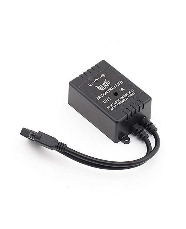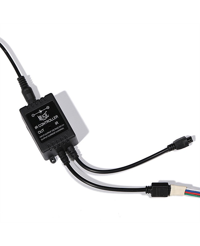 The IR music LED controller works on DC12V or DC24V, and has a 3-output channel design. The max output current of each channel is 2A, and the max loading power is up to 144W when working in DC24V. You can connect the music controllers for LED strip lights with a 4-pin female quick connector and a female DC connector to the RGB strip lights and the LED driver. The 20 Keys IR remote control is included, and you can use it to turn on/off the LED lights. There are eight static colors, 2 jump modes, 2 fade modes, and four music modes available. You can adjust the brightness of static colors. The LED music controller has a built-in high-sensitivity sound-sensitive module. When in music mode, the colors will change automatically with the music rhythm.