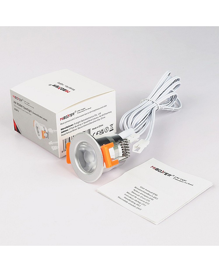 The MiBoxer HSP3 3W RGBW spotlights for the house come with DuPont male and female plugs and need to work with the 2-wire master boxes like HTR5, HTW5, and HTZ5 to change the colors, saturation, and adjust the brightness for various scenes. They can work with 12-Channel Junction Boxes, allowing as many as 80 pieces of RGBW spot lights together. The 24V RGBW spotlights adopt highly transparent masks for soft and bright light output. The color temperature is 3000K, 2000K, 4000K, 5000K, and 6000K, which are customized. There are 4096 smooth dimming levels, and the minimum brightness is as low as 0.1%. The stainless steel spring buckle is included, easily and firmly installed on the ceiling as subordinate lighting.