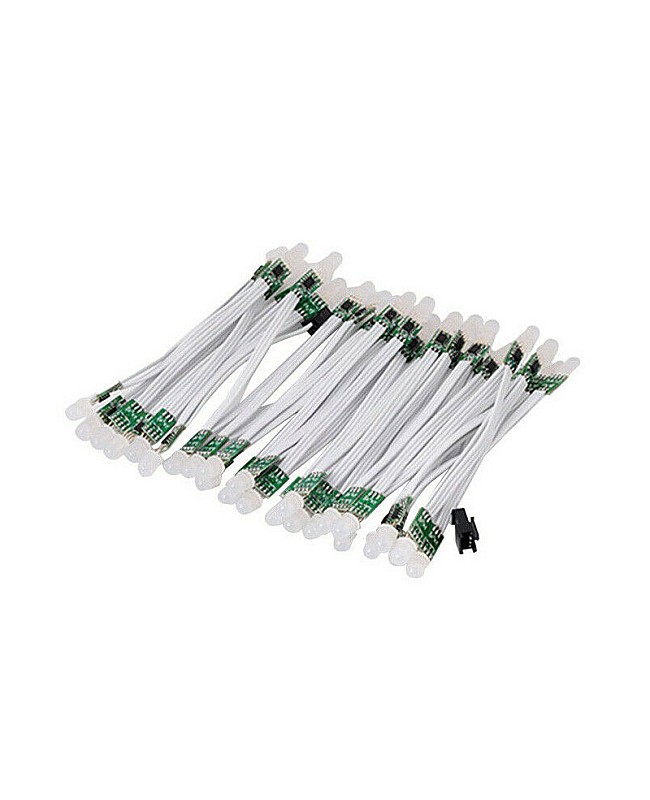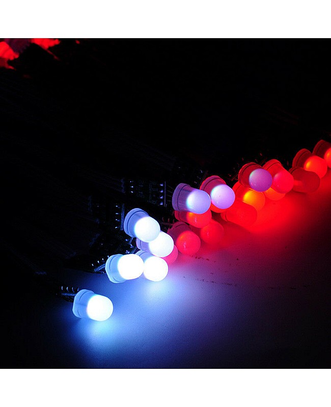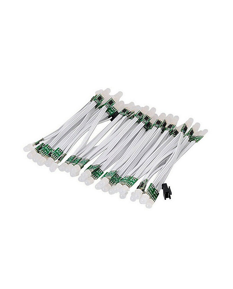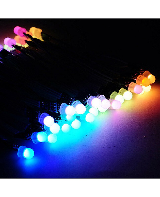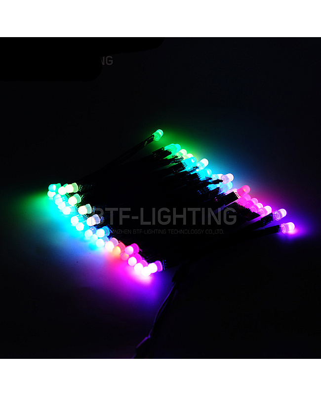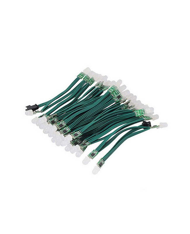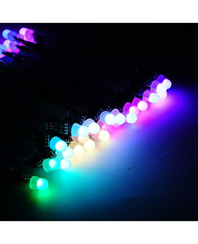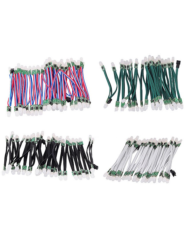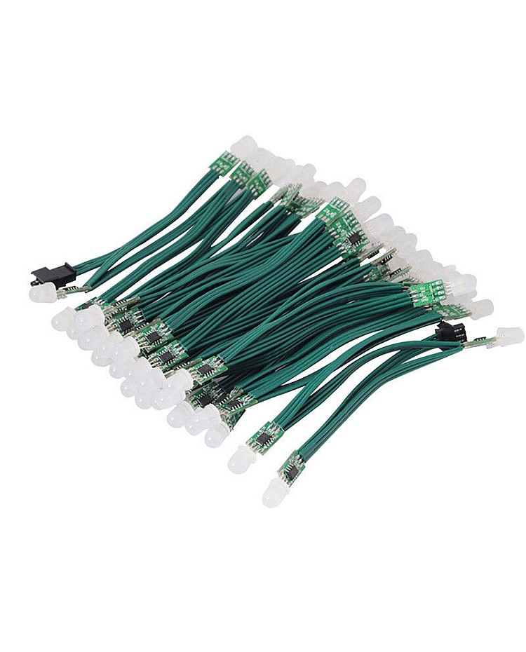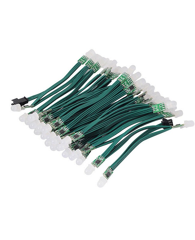 The WS2811 LED Christmas lights use F8 RGB LEDs as the light source and feature an individually addressable design. You can use them for Christmas trees, outdoor decor, events, home accent lighting, and DIY projects. Each LED controlled by a WS2811 IC can work well with Arduino, the FastLED library, Raspberry Pi, T-1000S, K-1000C, and other SPI LED controllers to achieve fantastic lighting effects. The individually addressable control allows the holiday string to display its own color, brightness, and animation independently. The LEDs can display 256 brightness levels and full 24-bit colors. Every LED has its unique color and brightness, and can be controlled and set to any color or animation you desire. You can create chasing effects, rainbow waves, twinkles, patterns, and custom light shows. The Magic Christmas lights come with 50PCS LEDs per string, and every Pixel can be cut off without damaging the rest. You can cut any quantity for your project and adjust the distance between 2PCS LEDs as needed. The pixel Christmas lights offer both IP30 non-waterproof and IP68 waterproof products for indoor or outdoor applications.