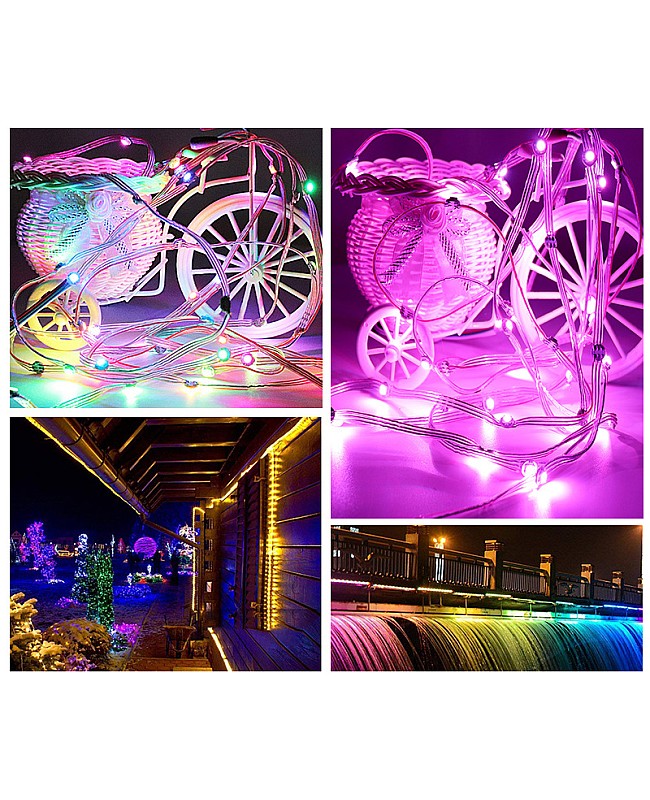 The battery-powered Christmas lights work on DC5V, can be powered by batteries, and use 5050 LEDs as the light source. The built-in LED WS2812B IC for the individually addressable functions can work great with the magic pixel LED controllers to achieve many amazing lighting effects. The LEDs are mounted on the heatsink for better heat dissipation. For each string of LED lights with 50 LEDs, you can cut any quantity for your project and reconnect them. You can shorten or extend the length of the wire between 2PCS LEDs, and the LEDs still work great. Recommend works with SP105E magic LED controller. The individually programmable LED lights are non-waterproof and are only recommended for indoor applications. You can use them in shopping malls, home decoration, cove lighting, lighting boxes, signage, backlighting, etc.