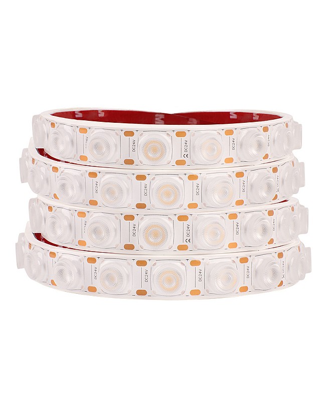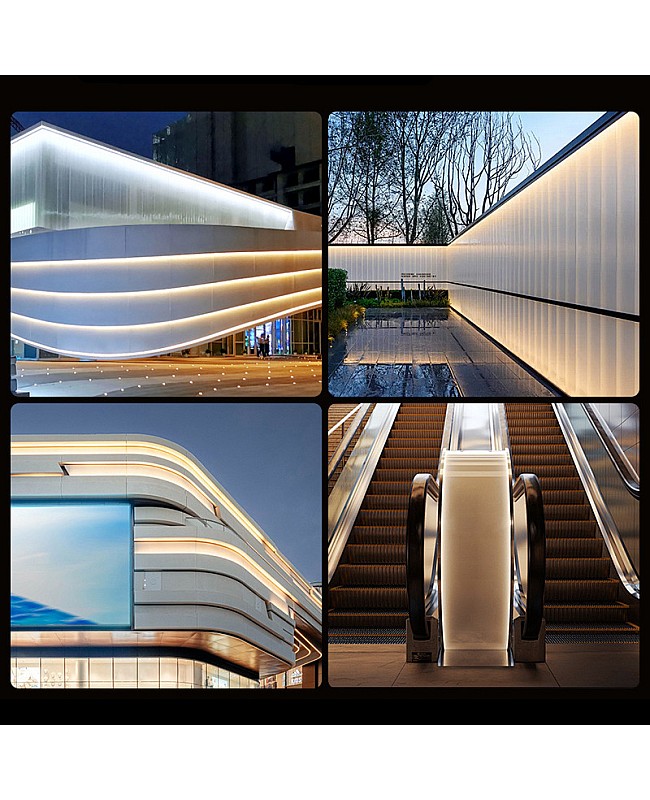 Wall washer lights are a cost-effective solution for producing a smooth, uniform light wash on the walls. They are ideal for highlighting architectural details, landscapes, and commercial facades. They are 5 meters per roll, flexible, and cuttable; the minimum cutting length is 23mm only. The wall washer strip lights are sealed in silicone tubes for waterproofing and dust proofing. The IP rating is up to IP67. The back has strong double-sided adhesive tape for easy installation. Various white products are available. You can choose warm white, natural white, or cool white.