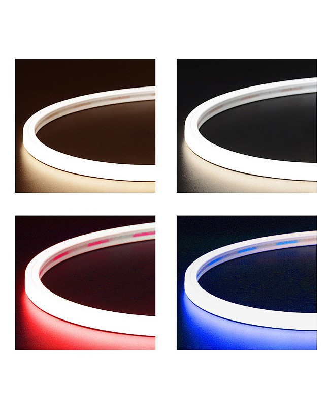 The 12 mm square silicone LED neon tapes are made of high-quality silicone material and a top bend design, offering excellent performance for indoor and outdoor linear lighting projects. it's 16.4FT per roll and the minimum cutting length is 50mm, you can cut to any length for your project from the cutting points and reconnect them. The waterproof level is IP67, UV, solvent, and saltwater resistant. You can install them in wet or rainy locations. The neon LED tapes work on DC24V and use high-quality SMD LEDs as the light source, with uniform and soft luminance, no light spots, and dark areas. Various emitting colors are available. You can choose warm white, natural white, cool white, and other single colors, RGB, dream color, and CCT. Perfect for adding a modern and stylish look to any space in homes, offices, hotels, parks, yards, etc., the neon LED tape lights are flexible and bendable; you can use them to make different shapes like arc lines, curves, rounded rectangles, round and oval, etc.