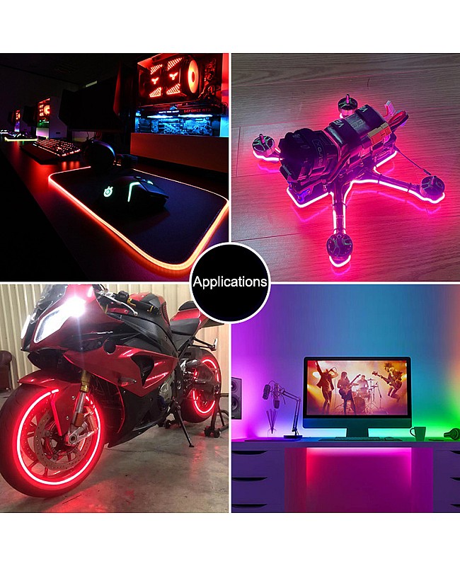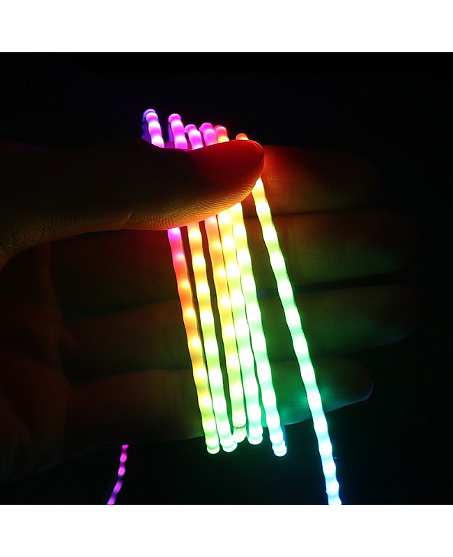 The RGB programmable LED tapes have a width of only 2.7 mm and can be easily installed in tight or narrow spaces. Ideal for precision applications such as model-making, jewelry showcases, custom signage, or narrow architectural detailing. The 2.7mm COB LED strips feature individual addressable designs and 160 ICs, allowing each LED chip to be controlled, creating dynamic color-chasing patterns, gradients, pixel animations, and many more. The chip-on-board technology delivers a dotless, uniform glow even in the tightest bends and smallest spaces, with no need for extra diffusers. The end features a 3-pin JST-SM connector, making it easy to connect to an SPI LED controller for lighting up. It comes with 5 meters per roll, and you can cut to any size you want. The minimum cutting length is 12.5 mm, and it can be easily cut to the desired length to fit specific lighting requirements. The flexible feature allows for easy bending and shaping around corners and curves. The programming LED strips are non-waterproof, and the back features double-sided adhesive tape, making them easy to attach to any surface you choose. The smart light strips feature a high color rendering index (Ra) of over 90, providing excellent color rendering.