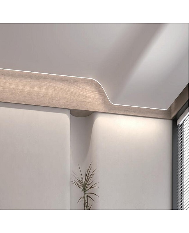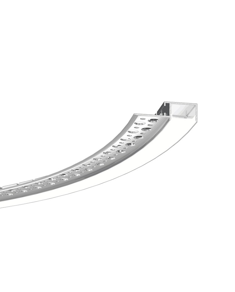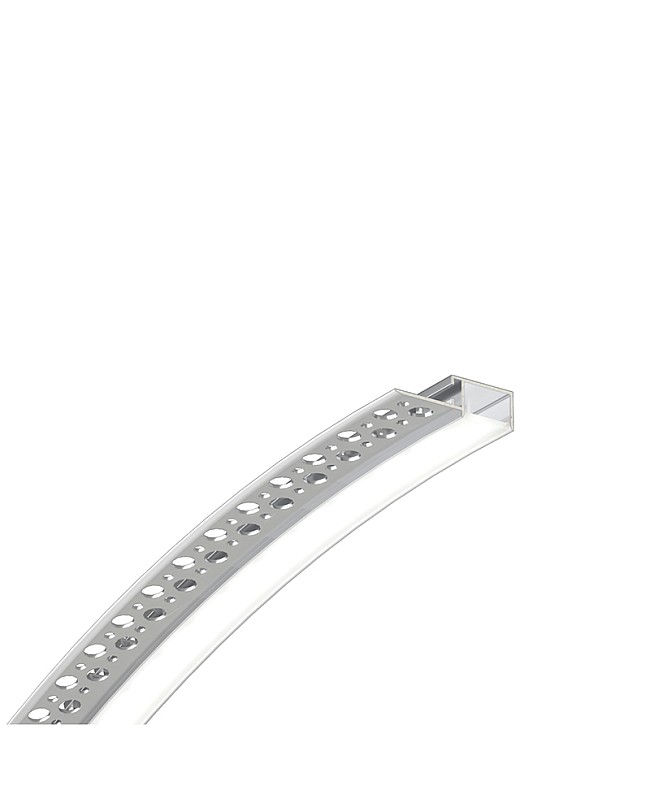 The 42mm bendable plaster-in LED channels are designed for various architectural and interior design applications and can be seamlessly integrated into the border of plasterboard, wooden panels, and drywall panels. They are easily bent and shaped to fit curved or irregular surfaces. This flexibility feature enables the creation of creative lighting designs and seamless integration into various architectural elements. The plasterboard LED channels are made of 6063-T5 extruded aluminum material and feature a silver anodized surface treatment for enhanced oxidation resistance and a longer lifespan. The standard lengths are 1 m, 2 m, and 3 m, and can be cut to any size suitable for your needs. The inner width is 20.6 mm, allowing for a maximum width of lighting strips of 20 mm (up-down bending). For the side-bending LED channels, you can install the LED tapes on the sides, with a maximum width of 5 mm. You can also install the zig-zag LED strips at the bottom; the maximum width is 16mm. Only one type of silicone diffuser is available: semi-clear. They are made of high-quality silicone material and will help to distribute light and reduce glare evenly. Recommend using high-density COB tape lights to create a soft and uniform illumination effect, thereby enhancing the overall ambiance of the space. They offer a sleek, flexible, and customizable lighting solution for architectural and interior lighting design. It's a popular choice to create seamless and visually stunning lighting effects indoors.