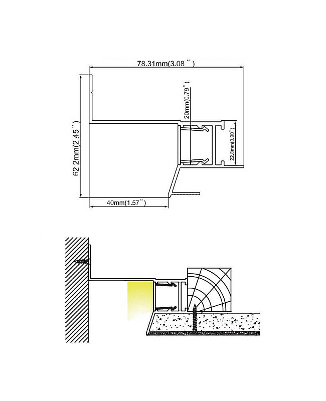 - Applications: shadow line lighting on false/suspended/dropped ceilings