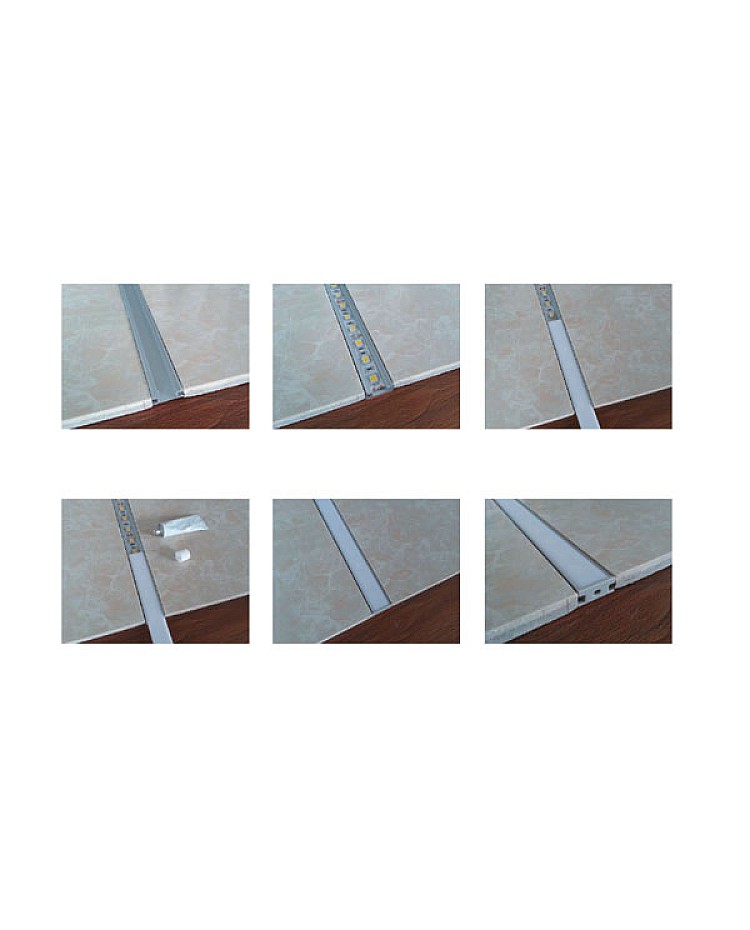 The aluminum LED light extrusion is designed to provide a sleek, modern look and bright and even illumination on your floor. It's easy to install and can be recessed to fit wood or tile flooring. It is made of high-grade aluminum material with a silver anodized finish, anti-oxidation resistance, and a longer lifespan. The aluminium construction also helps with heat dissipation, ensuring the lights remain cool to the touch even after extended use. The standard lengths are 1 m and 2 m, and can be cut to any desired length. Only one type of diffuser is available: a PMMA opal matte cover, made from a stable material that is anti-yellowing and features perfect light distribution. The inner width is 10mm, allowing for a maximum strip light width of 10mm. The flat-style LED extrusion Profile can be recessed into the floor with tile or wooden areas, designed to diffuse the light evenly to provide a soft, ambient glow. It's perfect for creating a unique lighting effect that will add a touch of sophistication to the floor.