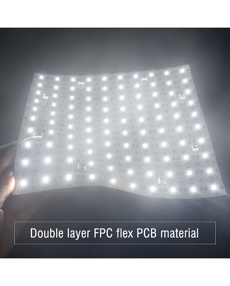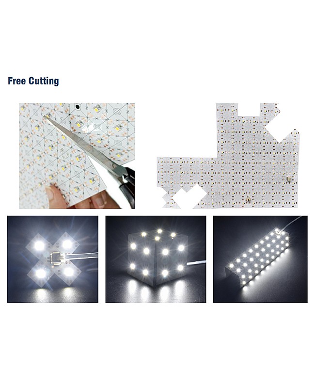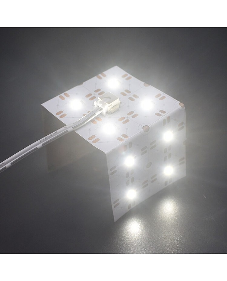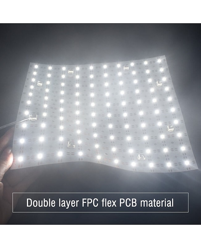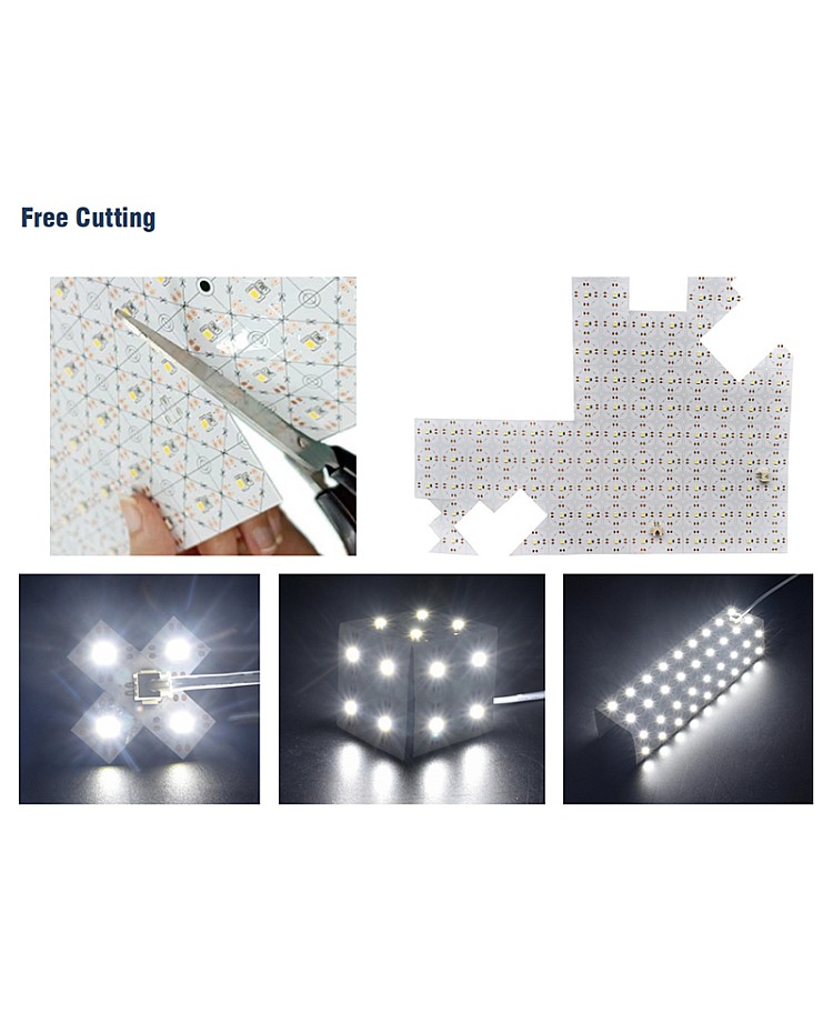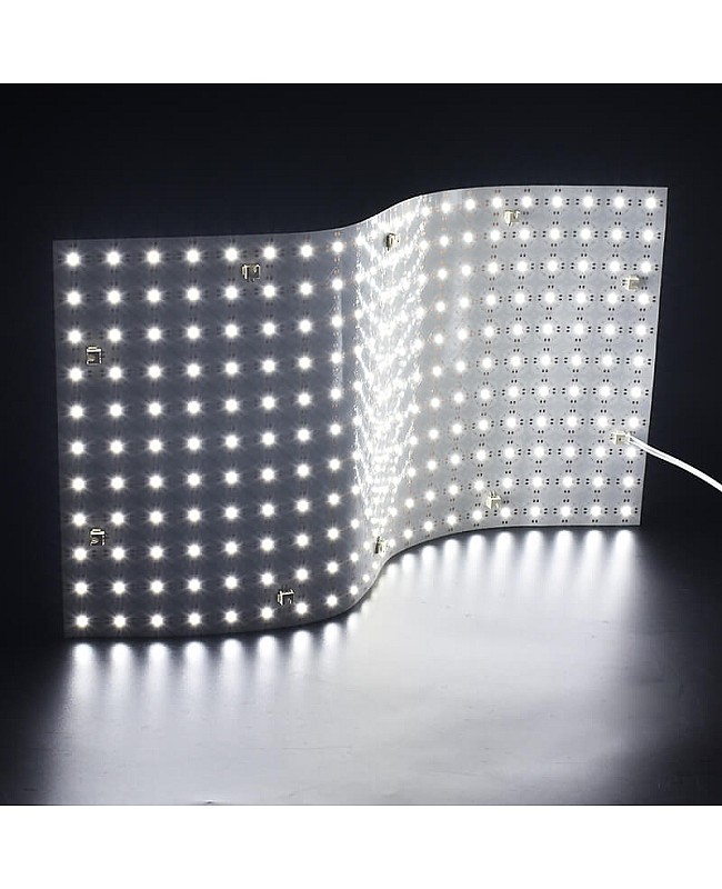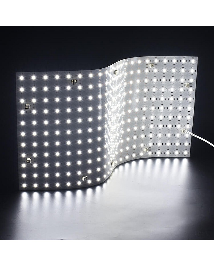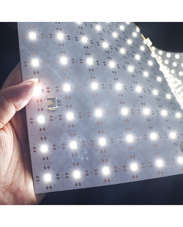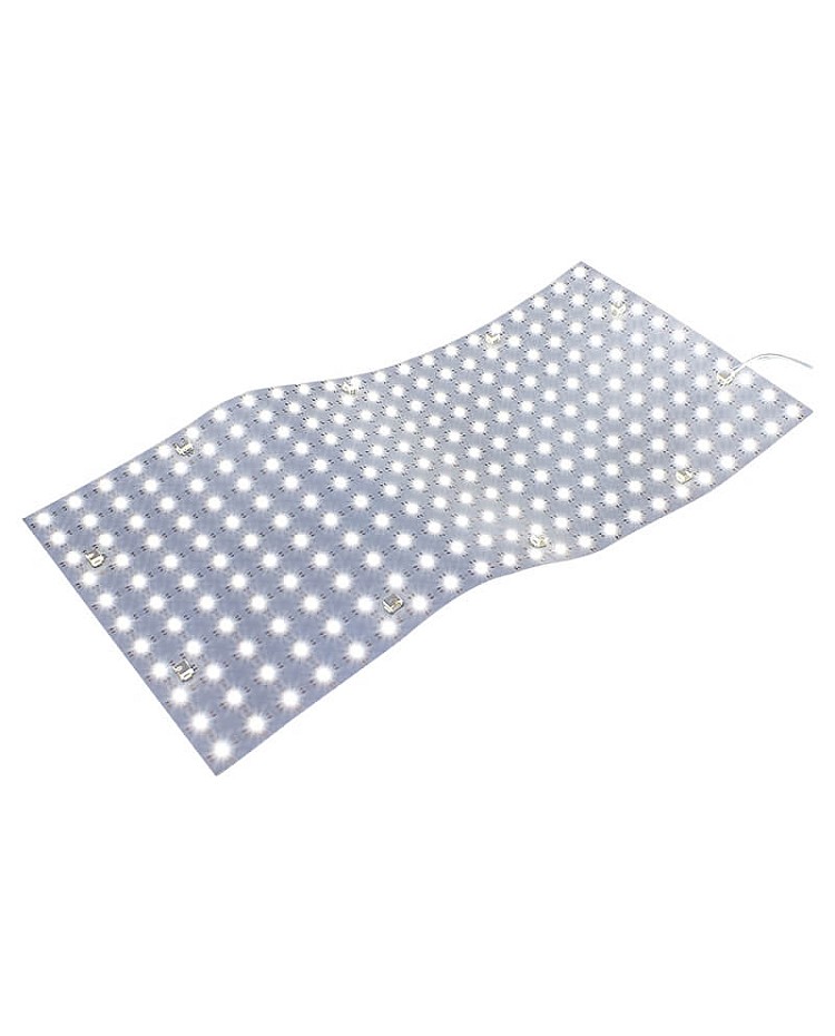 The LED sheet panels are designed to be ultra-thin, lightweight, and can be bent to fit various surfaces and shapes. They can be widely used for architectural lighting, interior design, advertising displays, and marble countertops, among other applications. Two sizes of cuttable light sheets are available: 250 mm x 250 mm and 490 mm x 245 mm. They use high-quality 2835 SMD LEDs as the light source, arranged on a dual-layer PCB to ensure flexibility and bendability, with no voltage drop, providing bright, uniform illumination. There are trim lines on the PCB board, allowing you to follow the lines to cut to any size for your projects and DIY work. The back features double-sided adhesive tape, enabling quick and easy installation. The bendable light sheet is available in various colors: 3000 K warm white, 4000 K natural white, and 6000 K cool white. The LED mats can connect to a dimming LED driver or light dimmer to adjust brightness for various scenes. The backlight sheets feature power connectors, enabling you to connect multiple sheets for larger projects.
