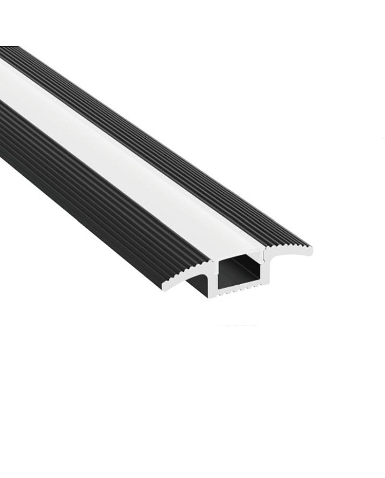 The floor recessed LED channel is designed to be recessed into floors with carpet, tile, stone, concrete, and wooden surfaces, providing low-profile, unobtrusive lighting. It's made of high-quality aluminum alloy material with a black anodized finish, offering anti-oxidation resistance, durability, and a long-lasting design. The standard lengths are 1 m and 2 m, with a maximum length of 3m. It can be cut to any size that fits your needs. Only PC diffused covers are available. It is made of a stable material, is anti-yellowing, and helps spread light evenly above the floor. The inner width is 12.3mm, allowing for a maximum width of 12mm for Strip Lights. I recommend using high-density SMD LED stripes or LED COB tapes as the light source, as they produce a uniform light without visible light dots. End caps with wire holes are included, making it easy to connect the LED lights to the Light Transformer for lighting or a dimmer for adjusting the brightness. With the slim LED channels, installation is easy in tight spaces, making them an ideal choice for illuminating any carpeted area on the floor.