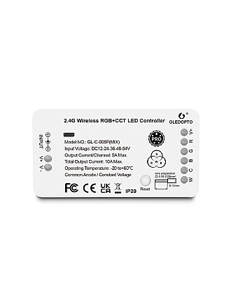 The Gledopto GL-C-003P 2 wires CCT/DIM 2 in 1 Zigbee LED controller is a Zigbee-compatible device de..