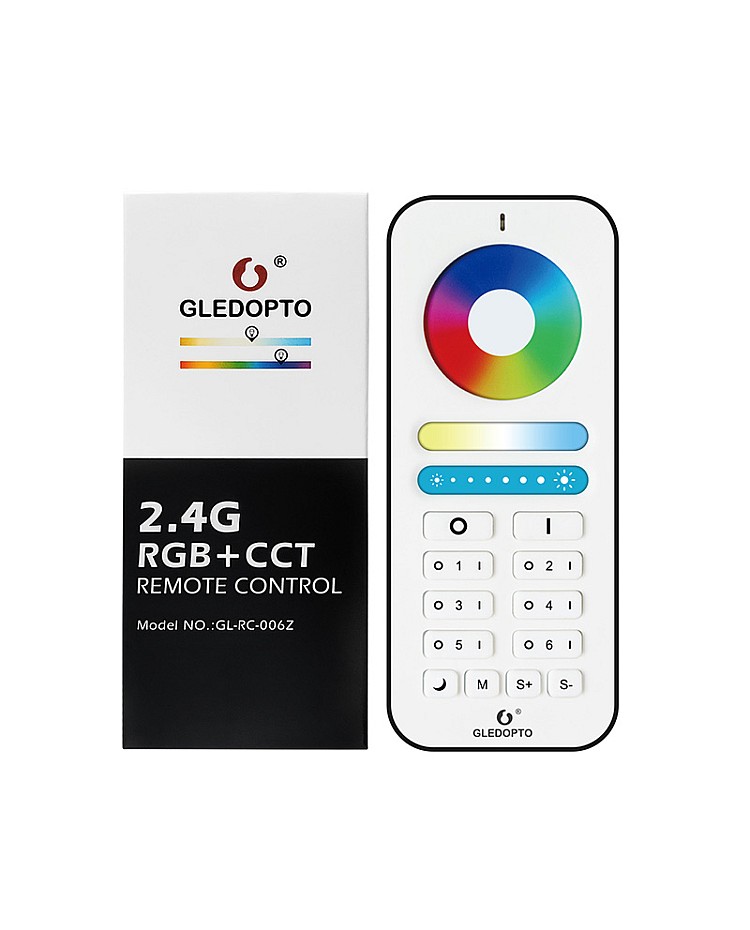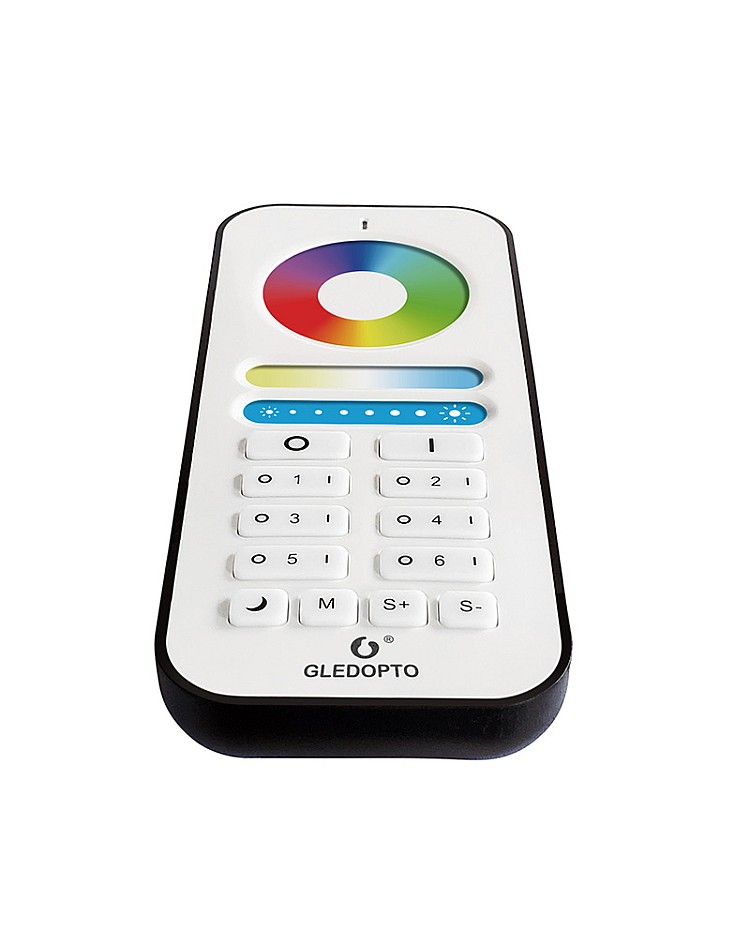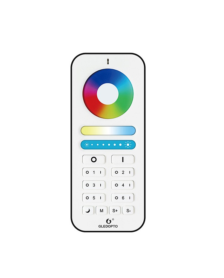 The Gledopto GL-RC-006Z LED RGB+CCT remote control can control the LED lights without a Zigbee Hub. You can use the LED controller remote control to control the LED controllers, bulbs, spotlights, downlights, floodlights, and garden lights. You can set the static color, dynamic mode, adjust the brightness and color temperature, etc. There are 16 million colors and 9 modes available. There are 6 zones controlled separately, designed. You can control the lights in multiple rooms by grouping rooms into 6 groups. There is a 60-second off-delay function. Press the moon button, and the light will automatically turn off after 60 seconds.