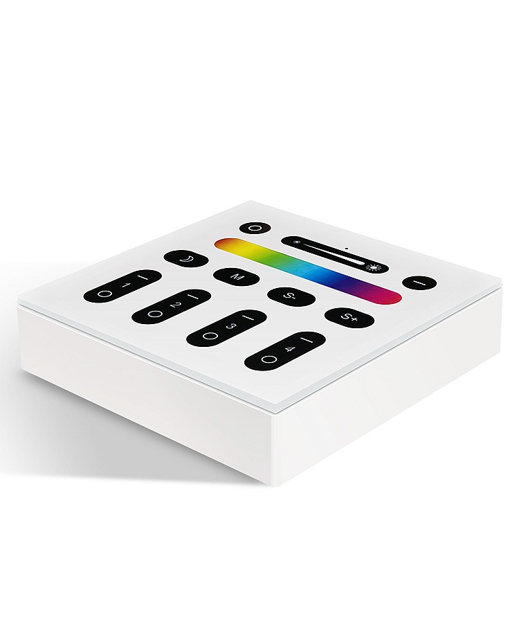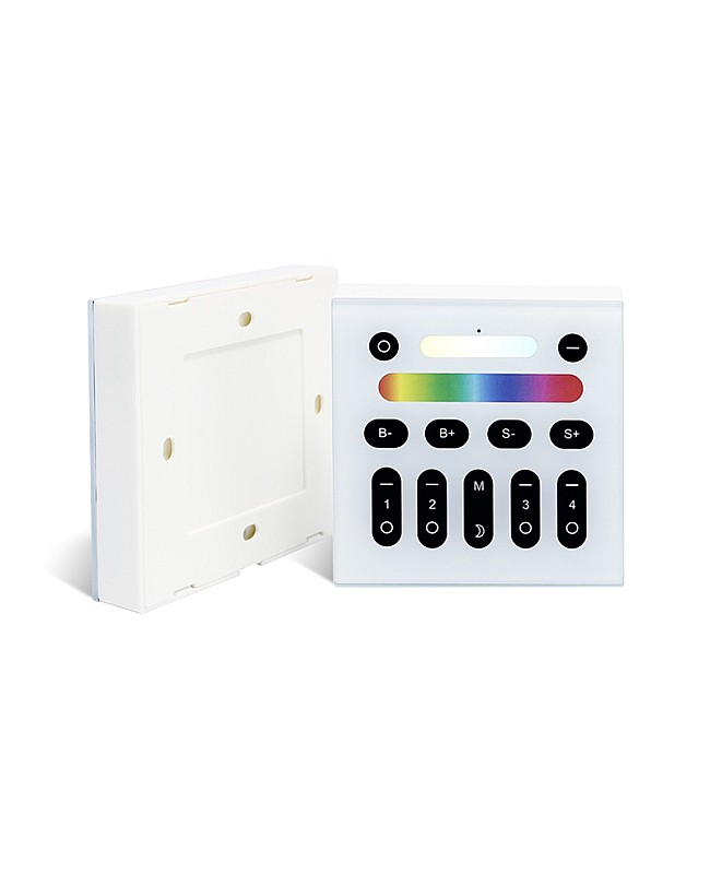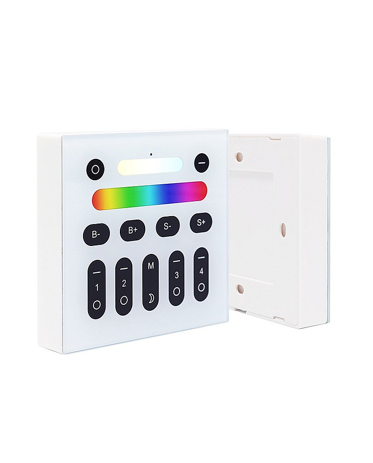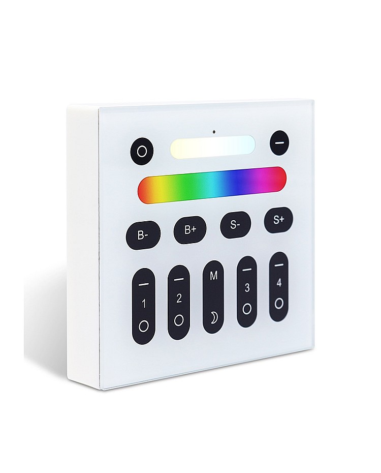 The Gledopto wall mount light switch smart comes with double-sided adhesive and is easy to install on the wall. The smart lighting switch works in DC3V and is powered by 2PCS batteries, which you can use to control the controllers, bulbs, spotlights, downlights, floodlights, and garden lights. There are 9 lighting modes and 16 million colors available, and you can choose different colors or lighting modes in different scenes. You can touch the buttons on the Switch to change the color, mode, and adjust the brightness and color temperature directly without gateways. There are 4 zones individually controlled by design, and you can control the lights in multiple rooms by grouping different rooms into four groups. Press the moon button to activate the 60S off delay function, and the light will be turned off automatically after 60S.