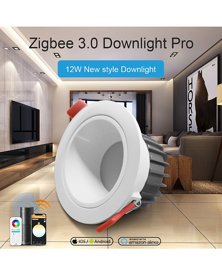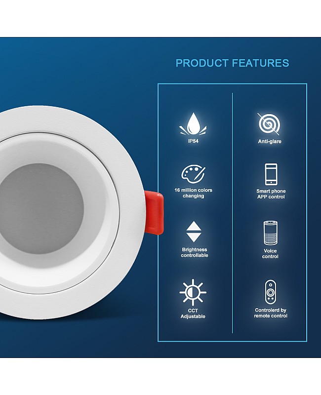 The Gledopto Zigbee smart dimmable bathroom downlights are compatible with Zigbee 3.0 gateways, can work with Philips Hue, Amazon Echo Studio, SmartThings, Tuya, Terncy, and Conbee. They can be controlled by a smartphone APP, voice control, and a 2.4G wireless remote control without a Zigbee gateway to set the color, adjust the color temperature, and brightness for various scenes. There are 16 million colors available, color temperature changes from 2200K to 6500K, and brightness-adjustable from 1% to 100%. The Zigbee smart downlights have a deeply anti-glare design, and the light source is deeply hidden to protect your eyes. The bathroom down lights use high-quality LED chips as a light source, with low heat, high brightness, and durability. The precision aluminum housing provides corrosion resistance and heat dissipation. The stable current and voltage LED driver will improve the lights' lifespan, with a surface that has a high-quality PC cover for a high light-transmitting rate, bringing you bright and soft light.