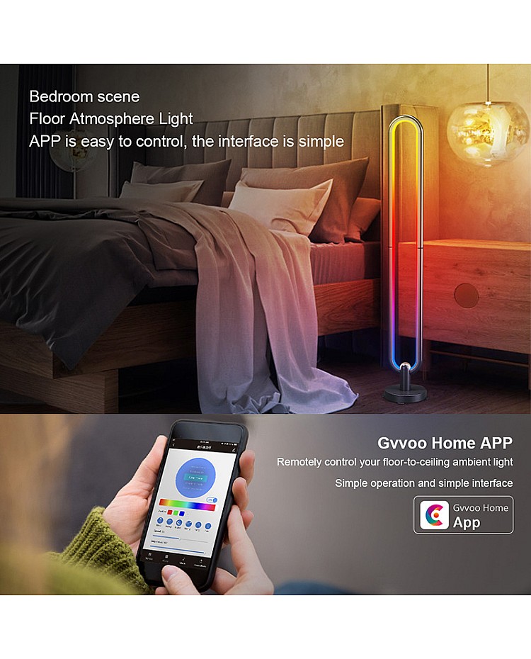 The GVVOOHOME HCP050 RGBWW flood corner lights, with a U-shaped design and a stand, work in DC12V and use 5050 RGB SMD and 2835 LEDs as the light source. They can be controlled by a smartphone APP and an IR remote control, and the 22 Keys IR remote control is included. You can use the remote to turn ON/OFF the LED lights, set the color or mode, and adjust the brightness or speed conveniently. There are 6 color modes, 3 music modes, and 6 dynamic modes. You can change the settings for various scenes. The GVVOOHOME RGBWW lighting adopts a Bluetooth module, and you can connect your smartphone to the corner flood light via Bluetooth. You can use the app to set the color and mode for various scenes; 16 million colors and various scene modes are available. The app has a timing function. You can set the time to delay the LED light, and the light will automatically turn off after the countdown. The smart corner flood light is non-waterproof; you can put it in the place you want in your home, like a bathroom, dining room, living room, reading room, etc.