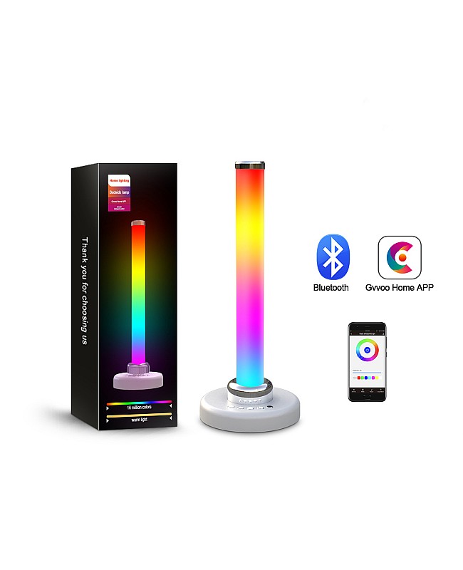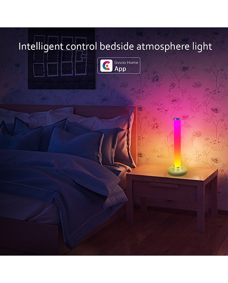 The GVOOHOME HCP057 smart RGBWW lighting ambiance with round tube design comes with a stand, working in DC5V and built-in 4400mAh Li-ion battery. The stand has a Type-C charging port, making it easy to charge. The ambiance lighting kit uses high-quality 2835 and 5050 LEDs as the light source, there are 5 buttons on the stand, you can turn ON /OFF the Light or change the working mode from music mode, warm white light mode, RGB mode or RGB symphony mode, long-press the button to adjust the brightness or speed of symphony. A smartphone APP can also control the ambient light; You can download the APP "Gvvoo Home" to control the LED light smartly. You can set the static color and adjust the brightness, dynamic mode, and speed. There are various scene modes available for different scenes. You can use the ambient lighting for reading, at night, at parties, in films, games, etc. The ambient lighting is non-waterproof and is recommended for indoor use only.