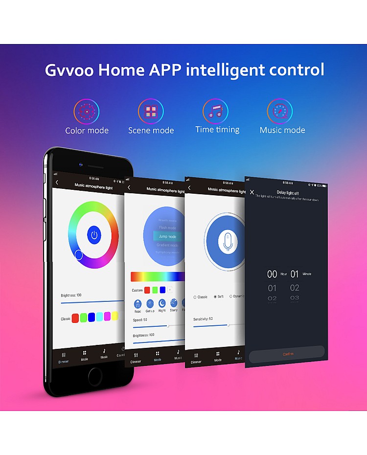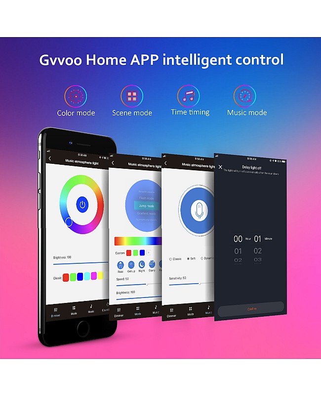 - Modes: Music Mode, Warm Light Mode, RGB Mode, RGB Symphony Mode
