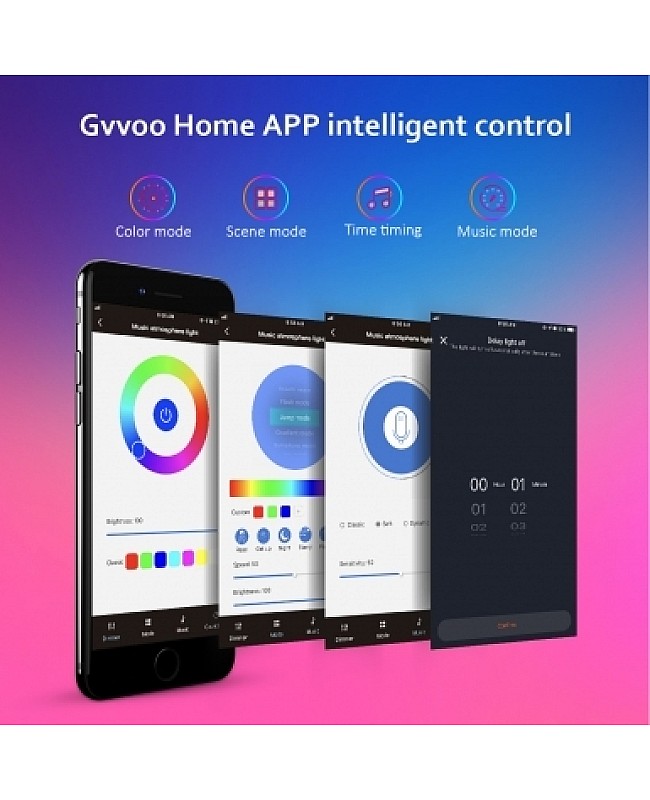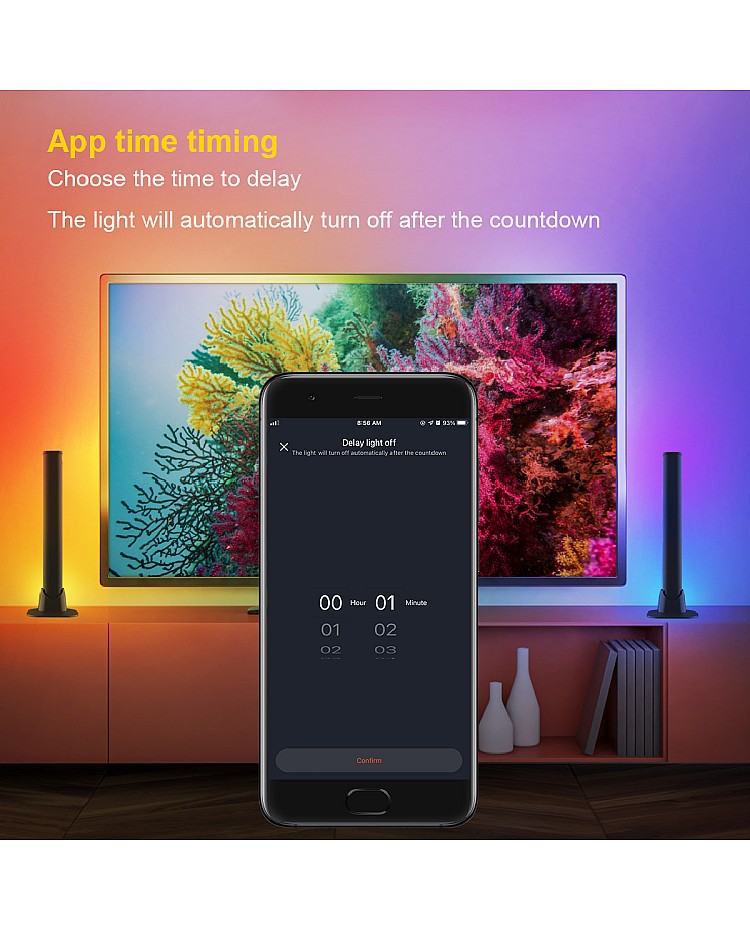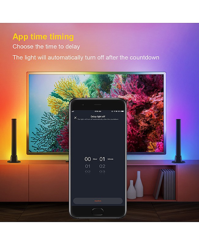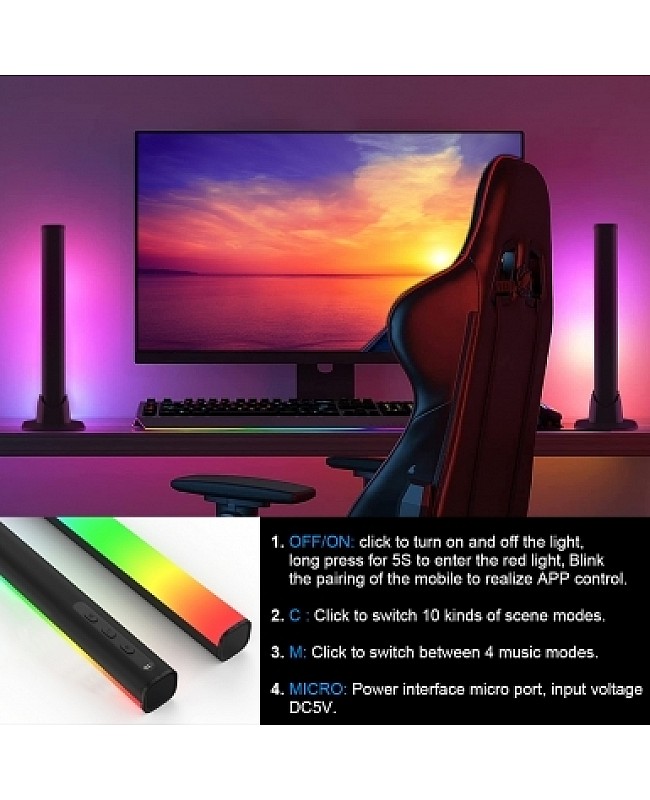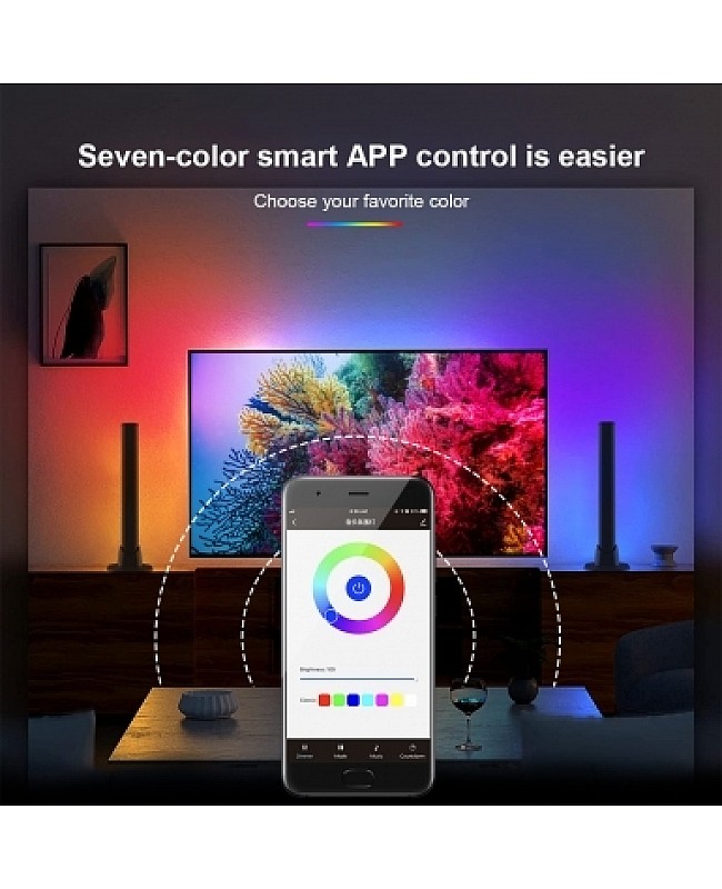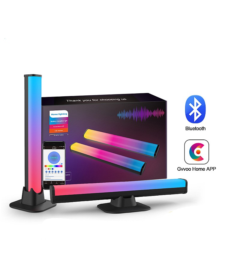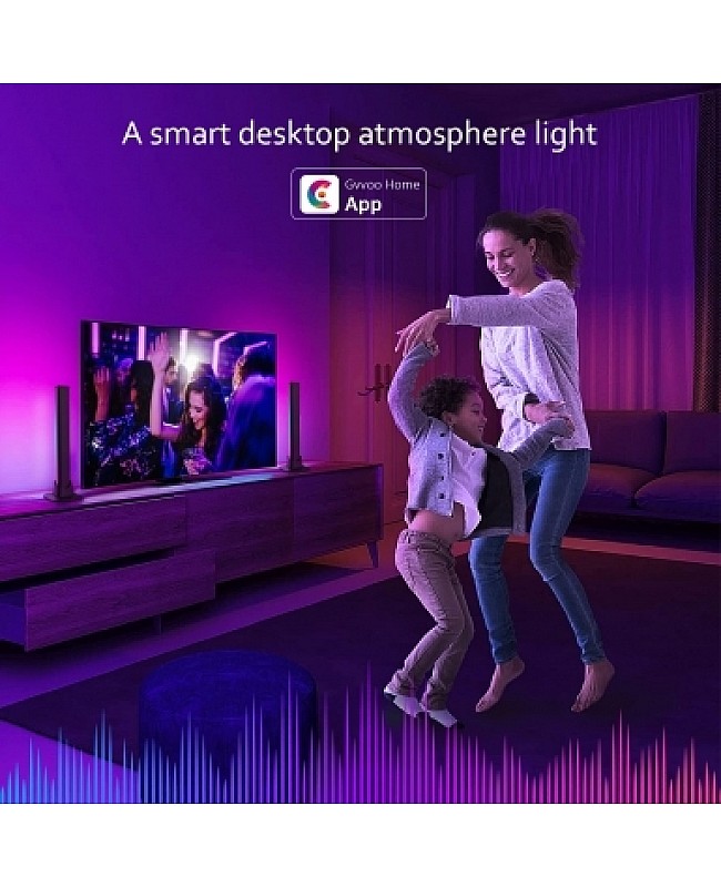 The GVVOOHOME HCP060 desktop ambient light TV, which uses high-quality SMD LEDs as the light source, works in DC5V and comes with 1 to 2 USB cables, making it easy to connect to the USB port on the TV or PC to light up There are two control methods: smartphone APP control and manual control. The ambient light tube comes with stands, you can stand them on the desktop around your TV or PC There are 3 buttons on the LED lights, you can use to turn ON/OFF the light, switch 10 kinds of scene modes, or switch 4 music modes for various environments. You can also download the smartphone APP to control the LED light conveniently; You can connect the Ambient Lights to your mobile phone through Bluetooth. You can switch the color, scene, and music modes or launch the APP's timing function. Easy to choose the color and adjust the brightness. After you activate the music mode, the light dances with the music.
