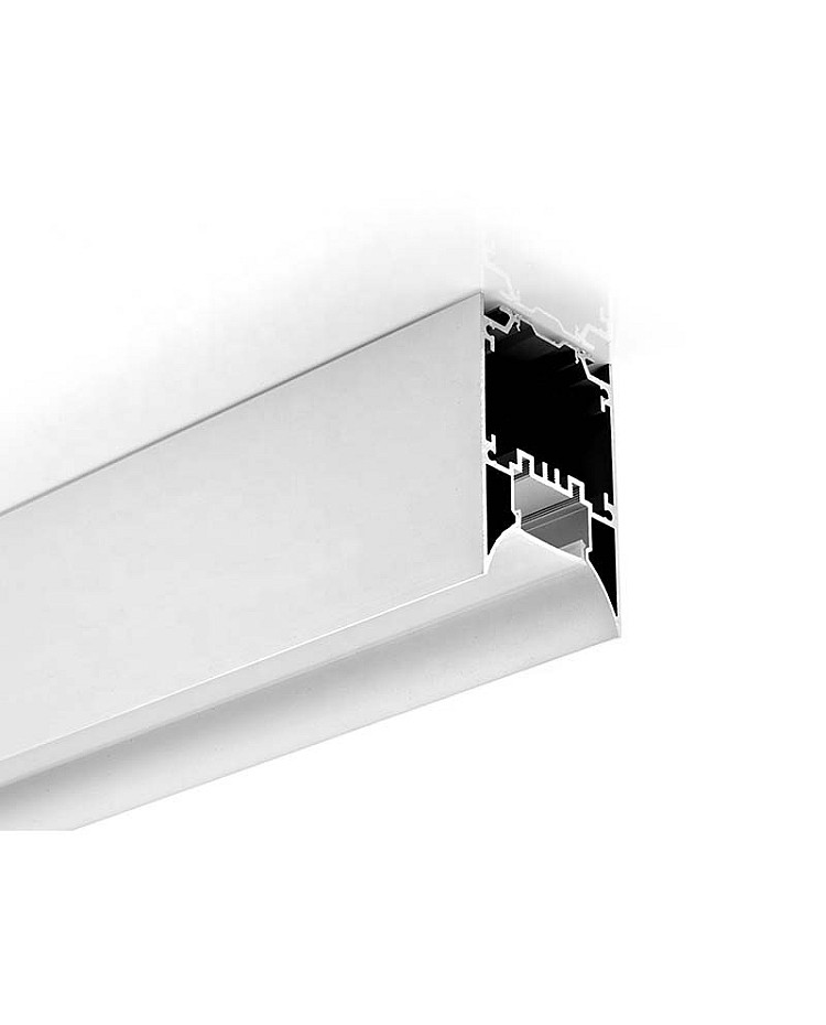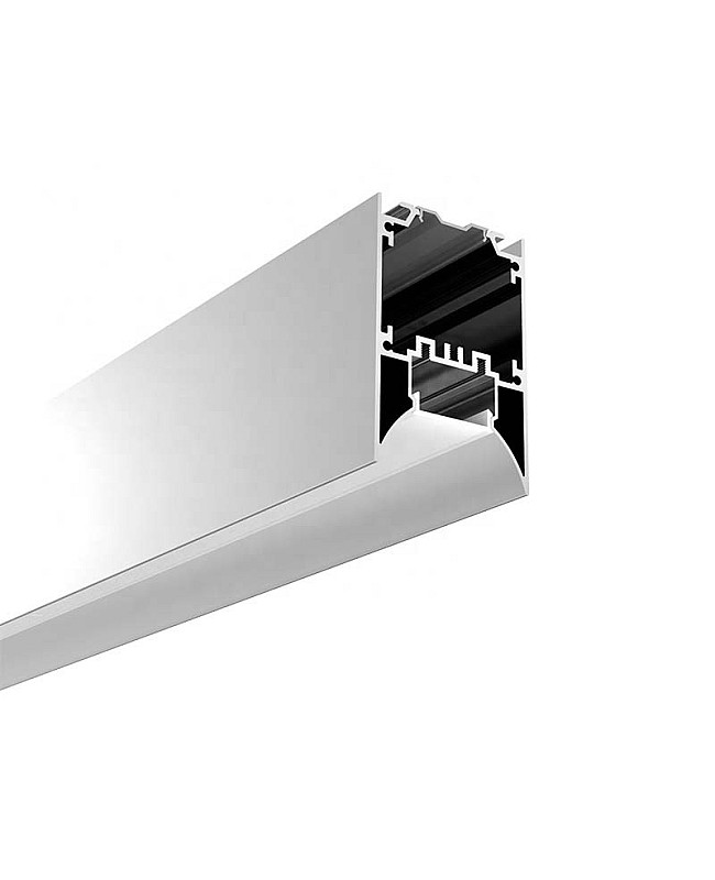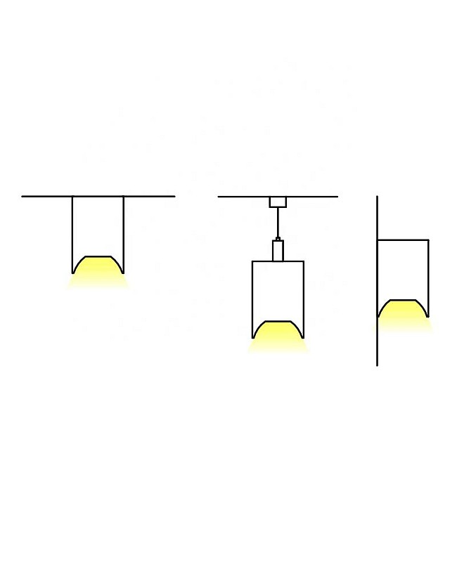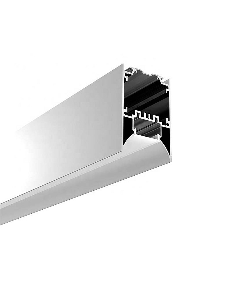 The 2-inch pendant LED extrusions with a regressed cover are designed to provide indirect lighting with a soft, even glow. The regressed cover allows the light to be diffused and spread out along the length of the extrusion, creating an even, comfortable light that will not be overly bright or harsh. The aluminum extrusions are made of 6063-T5 aluminum alloy material with silver anodized surface treatment, anti-oxidation resistance, and a longer lifespan. The standard length is 1M, and the max length is 2.5 m. It can be cut to any length that fits your project. Only one type of PC frosted opal diffuser is available, made of brand material, anti-yellowing, for perfect light distribution. The inner width is 18.5mm, allowing the maximum width of strip lights to be 18mm. We recommend adding dual rows of high-density COB strip lights as the light source. The aluminum base can be used as a heat sink for better heat dissipation and to extend the LED lights' lifespan. End caps and suspension wires are included, easy to mount on the ceiling, and allow surface mounting on the walls. The light can be used in various applications such as retail stores, offices, and residential spaces.