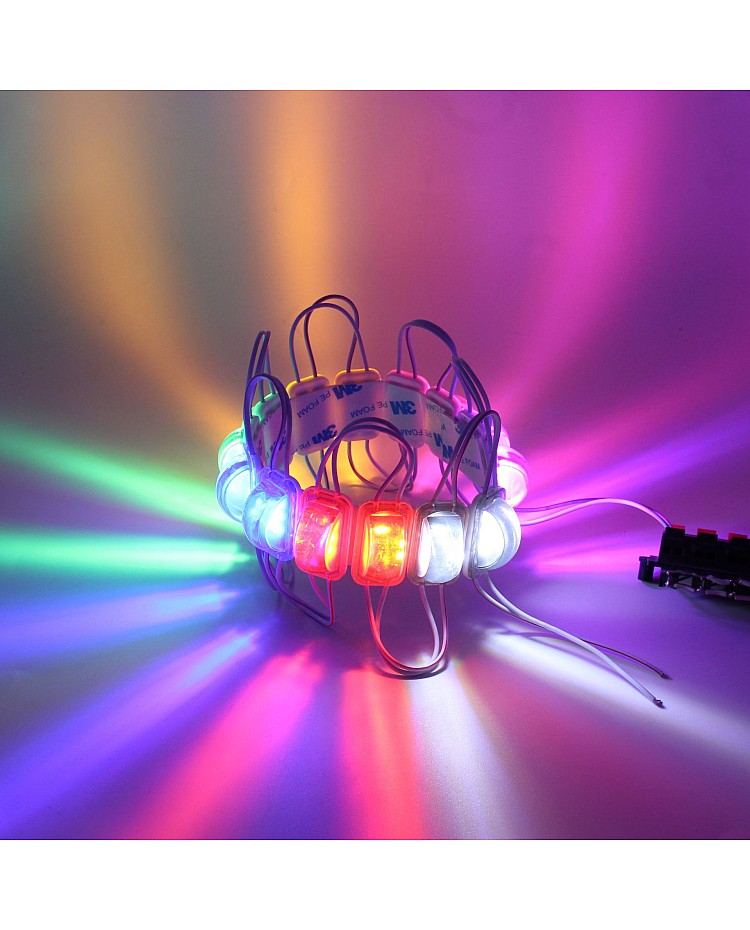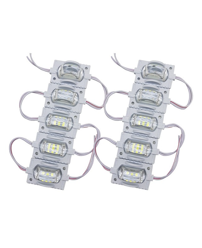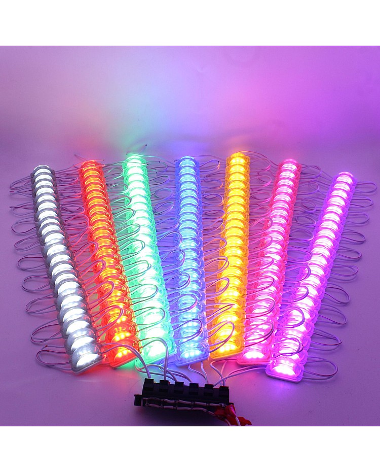 The mini 3 LED modules for wheel eyebrow lights use 3PCS high-bright 0.5W 2835 SMD LEDs as light sources. They are mounted on the aluminum board and sealed in the ABS shell with a PC lens on the surface. This is for better heat dissipation and a wide beam angle. The IP rating is IP65 waterproof and dustproof, you can use them for indoor and outdoor lighting projects, the back with double-sided adhesive tape, both sides with the screw holes, you can stick on the place you want to install or use the screws to fix them. The mini LED modules work in DC12V or DC24V, you can connect them to the 12/24VDC battery in your car to light them up directly. The mini LED modules are 10PCS per string and 20PCS per set, cuttable and reconnectable, you can cut to any quantity and reconnect them on the wheels on your cars as warning lights, contour lamps, wheel trim lights on the motorcycle, cars, trucks, vans, pickup cars, etc. you also can be used as backlighting in displays, stage&theaters, signs, windows, coves, channel letters, under-cabinets, etc. you can connect to a lighting dimmer to adjust the brightness freely.